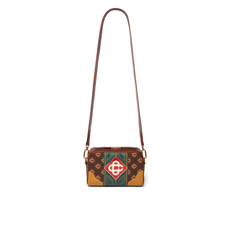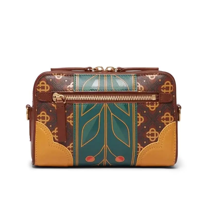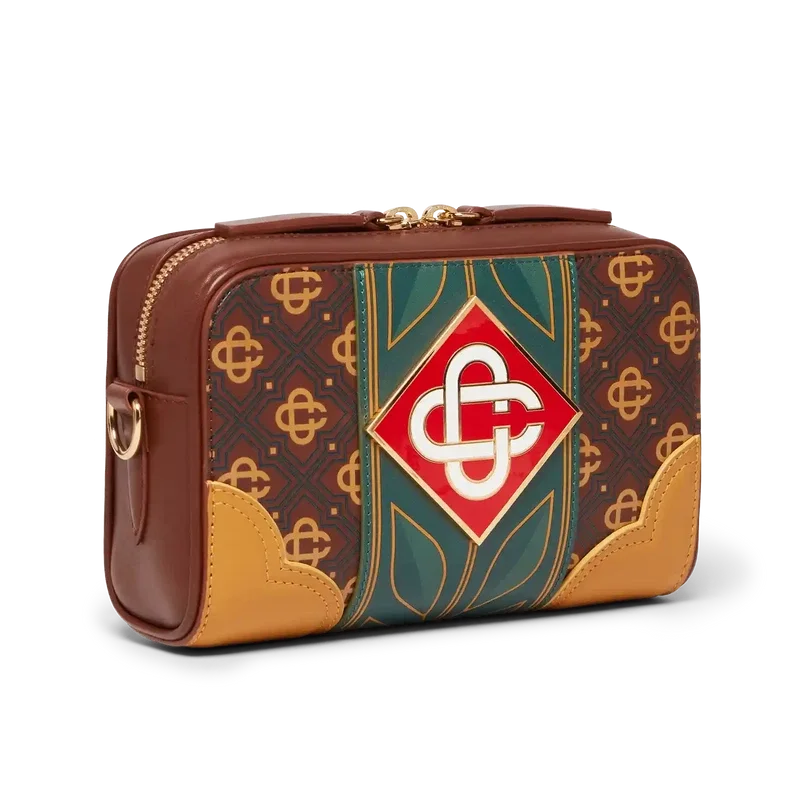 Die braune Monogram-Umhängetasche ist aus italienischem Leder gefertigt und an der Seite mit dem charakteristischen Rautenlogo des Hauses verziert. Abgerundet wird sie durch das charakteristische Lorbeerblatt-Motiv des Hauses, einen Reißverschluss, einen Schulterriemen, eine Außentasche mit Reißverschluss und eine Innentasche. Im Lieferumfang enthalten sind eine Geschenkbox, ein Staubbeutel mit Markenlogo und eine Produktbeschreibung.