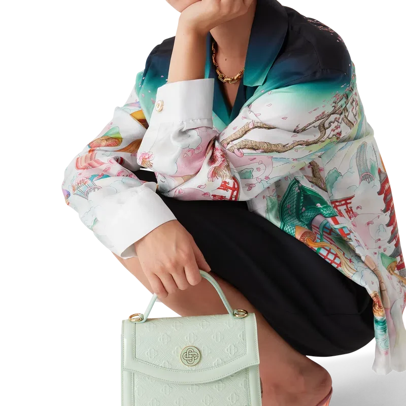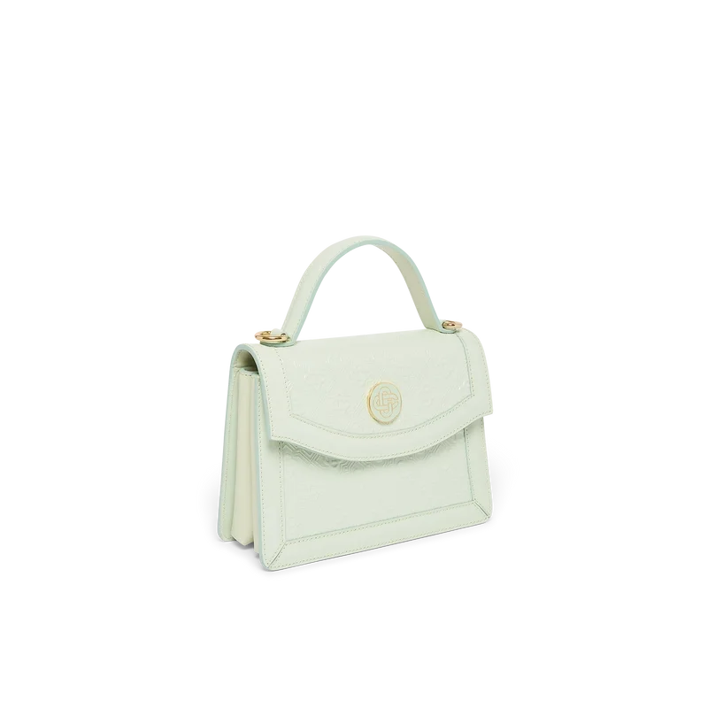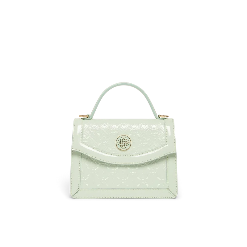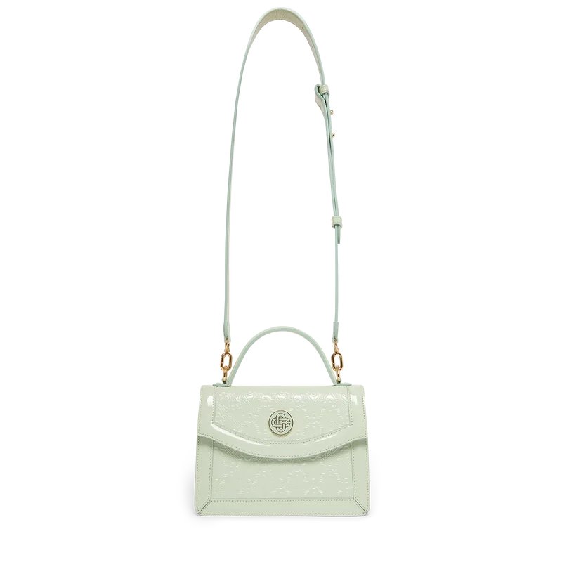 Die Mini Jeanne Tasche mit mintfarbenem Monogramm-Prägung ist aus italienischem Kalbsleder gefertigt und mit dem ineinander verschlungenen CC-Logo des Hauses auf hochwertigen, vergoldeten Metallbeschlägen verziert. Ausgestattet mit einer Klappe und Magnetverschluss, einem abnehmbaren Riemen, einem Tragegriff, einem Canvas-Futter und einer inneren Einsteckfach. Dieser Artikel wird mit einem Casablanca-Staubbeutel und einer Box geliefert.
