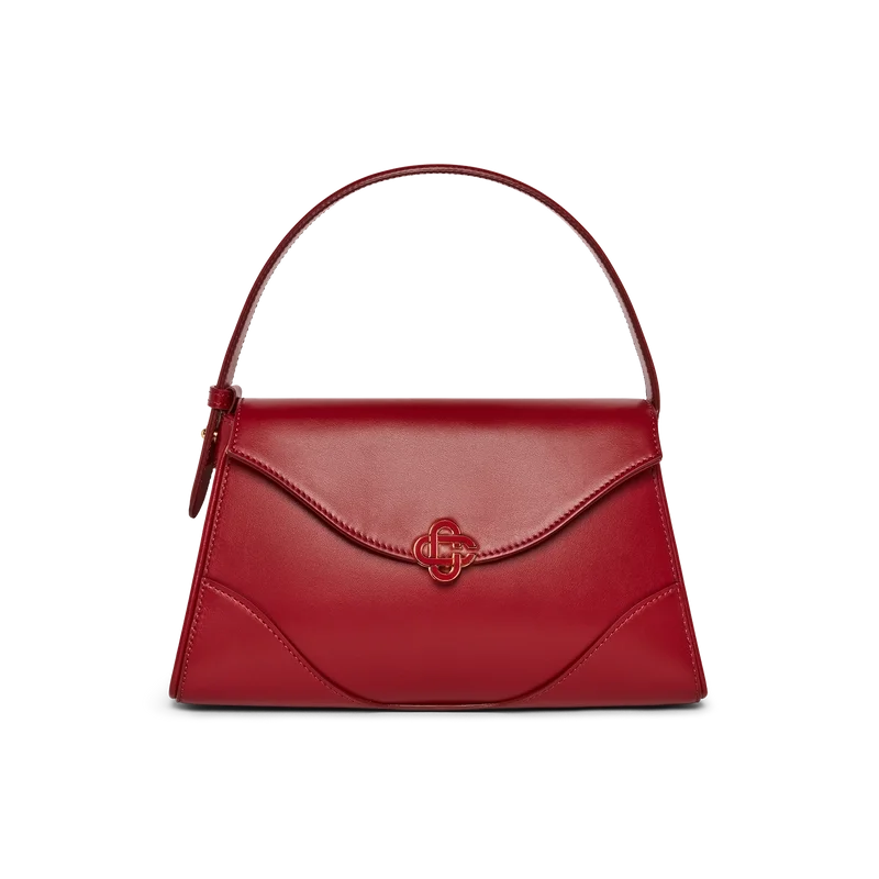 Die kleine Jeanne-Tasche in Rot ist aus italienischem Kalbsleder gefertigt und mit dem roten Diamond Monogram des Hauses auf hochwertigen Metallbeschlägen verziert, die als Verschluss dienen. Ausgestattet mit einem abnehmbaren Riemen, zwei Hauptfächern, einem Canvas-Futter und einer inneren Einsteck-Tasche. Wird mit einem Staubbeutel mit Markenlogo und einer Box geliefert.