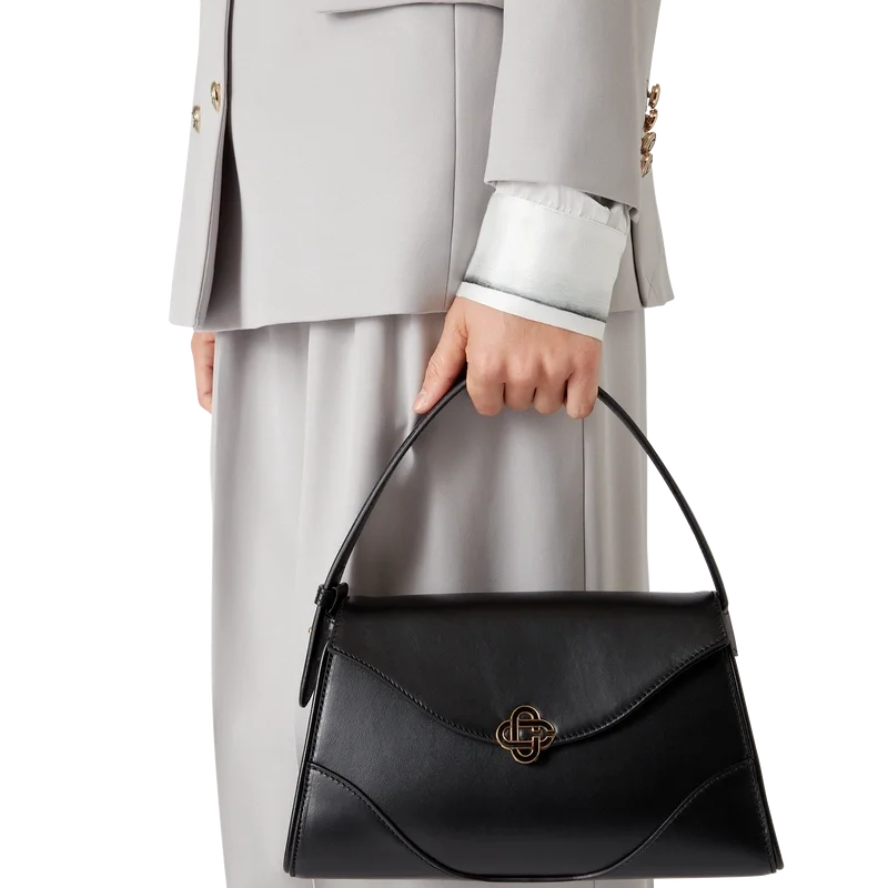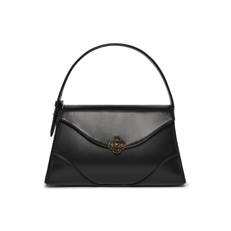 Die kleine schwarze Jeanne-Tasche ist aus italienischem Kalbsleder gefertigt und mit dem roten Diamond Monogram des Hauses auf hochwertigen Metallbeschlägen verziert, die als Verschluss dienen. Ausgestattet mit einem abnehmbaren Riemen, zwei Hauptfächern, einem Canvas-Futter und einer inneren Einsteckhülle. Wird mit einem Staubbeutel und einer Box mit Markenlogo geliefert.