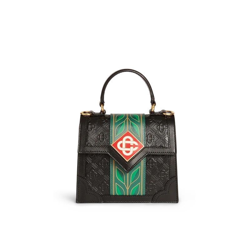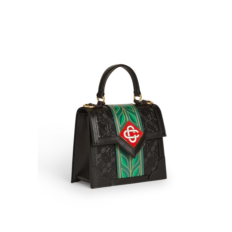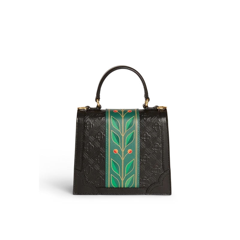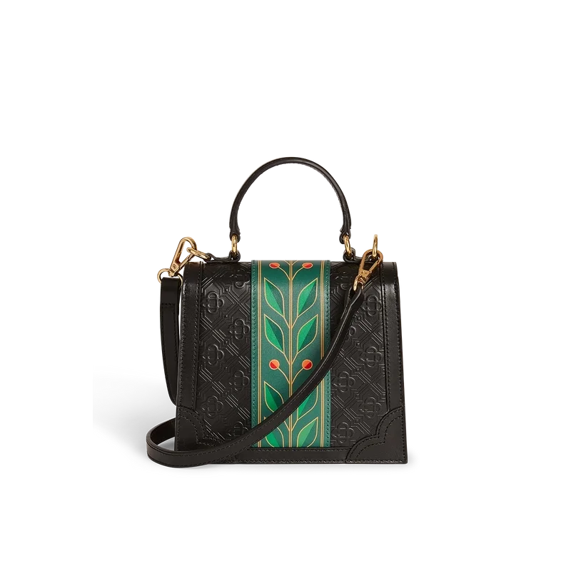 Die schwarze Laurel Mini Jeanne Tasche ist ein klassisches Design aus italienischem Monogram-Kalbsleder. Abgerundet wird sie durch das charakteristische Laurel-Motiv des Hauses, einen Lederriemen und vergoldete Messingbeschläge.