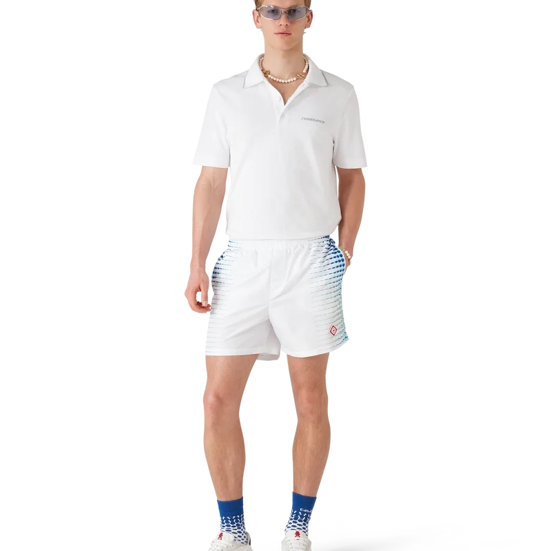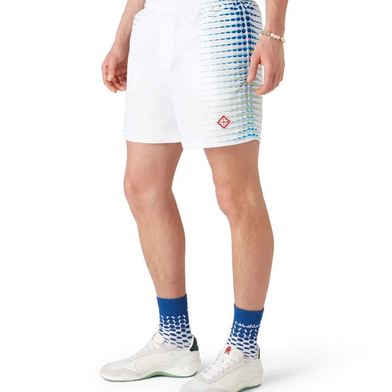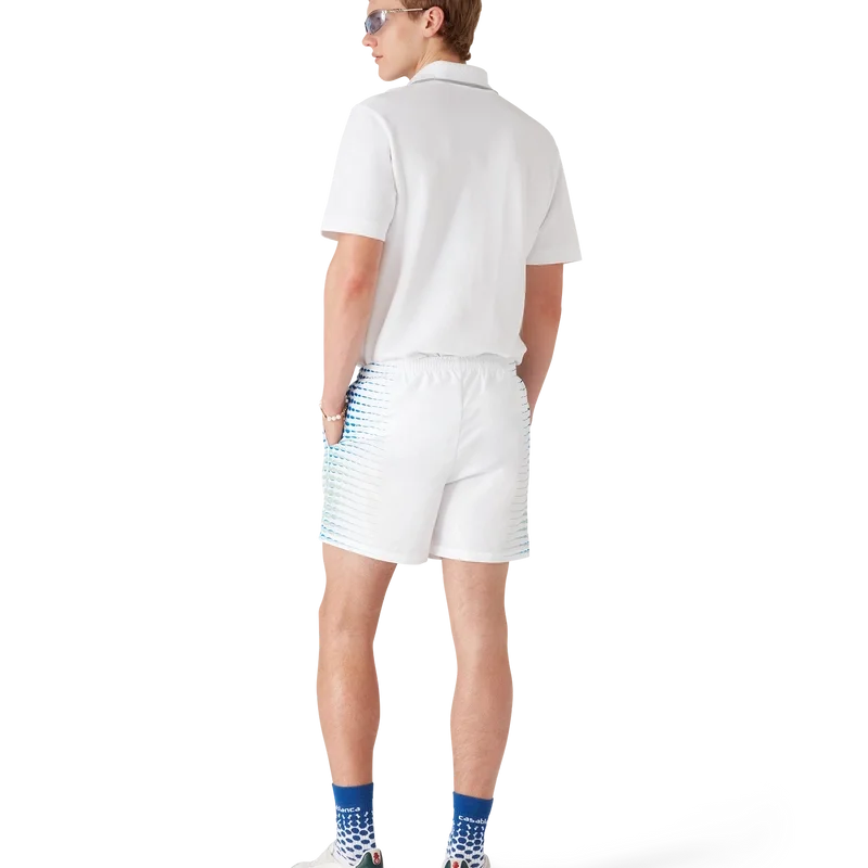 Die bedruckten Badeshorts zeichnen sich durch ein raffiniertes Design aus, das in Zusammenarbeit mit Martin Naumann entstanden ist. Dieser ist bekannt für seine Arbeit mit Farbverläufen und Textureffekten, mit denen er Halbtöne und glasartige Effekte erzeugt. Abgerundet durch einen elastischen Bund, einen innenliegenden Kordelzug, Seitentaschen in den Nähten und ein Futter.