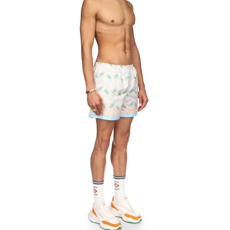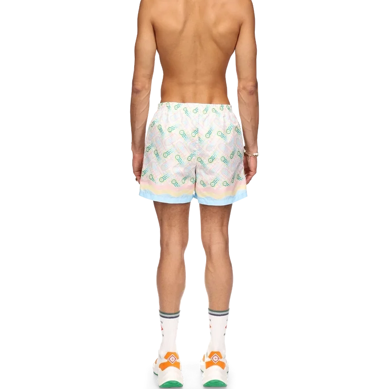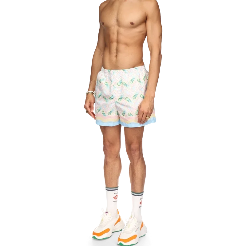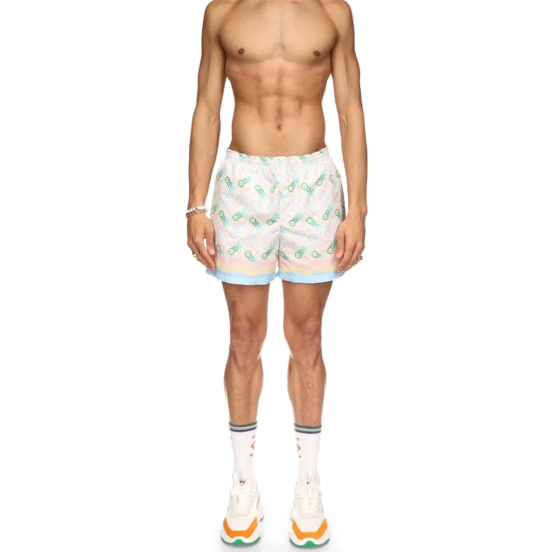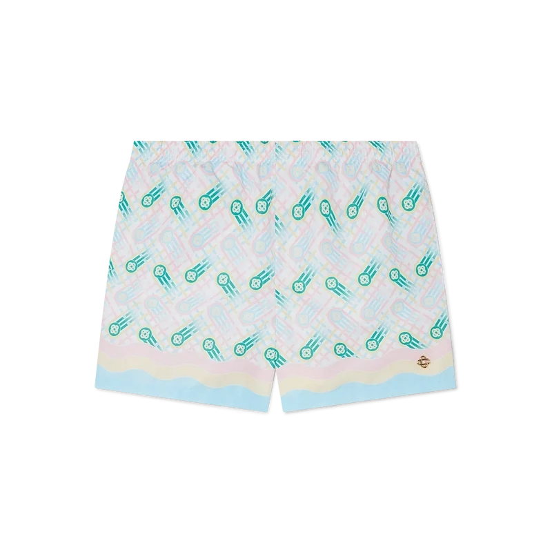 Die Ping-Pong-Badehose ist ein bedrucktes Design, das von der früheren Japan-Kollektion des Hauses inspiriert ist und einen Ping-Pong-Ball in Bewegung mit unserem von Memphis Wave inspirierten Saumdetail zeigt. Hergestellt aus Polyester mit elastischem Bund, Seitentaschen und Futter, wird dieses Modell durch ein Casablanca-Markenlabel abgerundet.