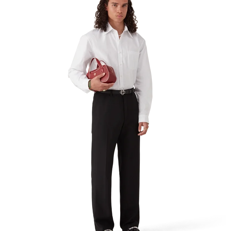 Das Baumwoll-Monogramm-Jacquard-Oxford-Hemd ist ein klassisches Langarm-Design. Mit Brusttasche, spitzem Kragen, Knopfleiste, Corozo-Knöpfen mit ineinander verschlungenem Cc-Logo und klassisch abgerundetem Saum.