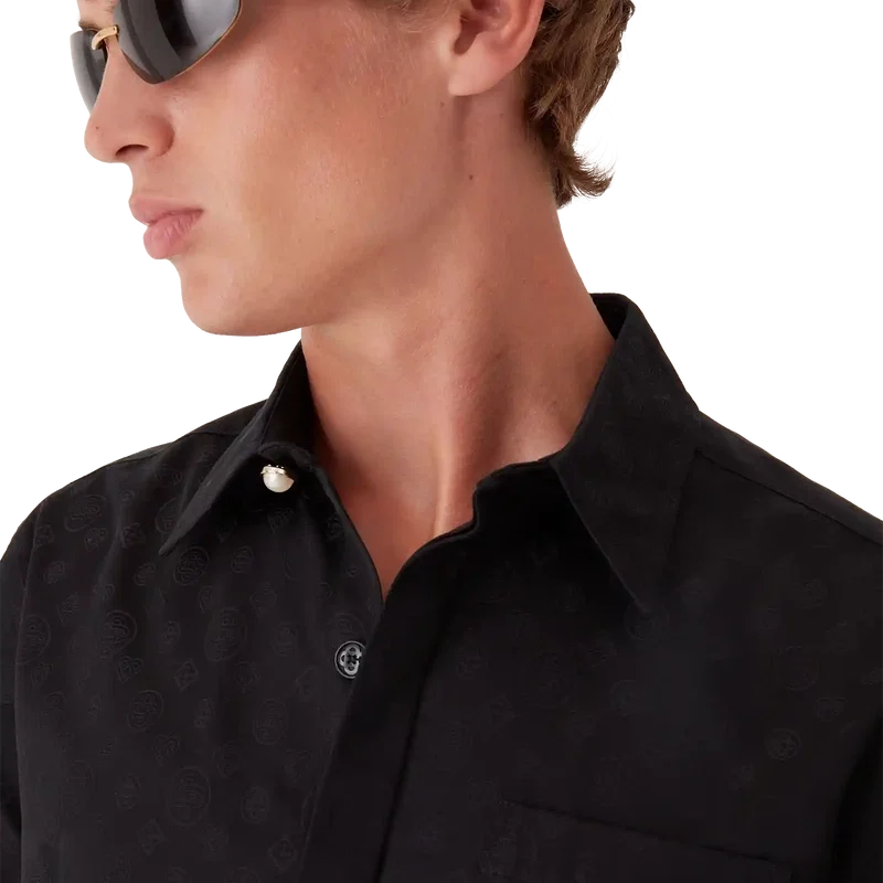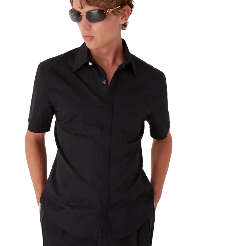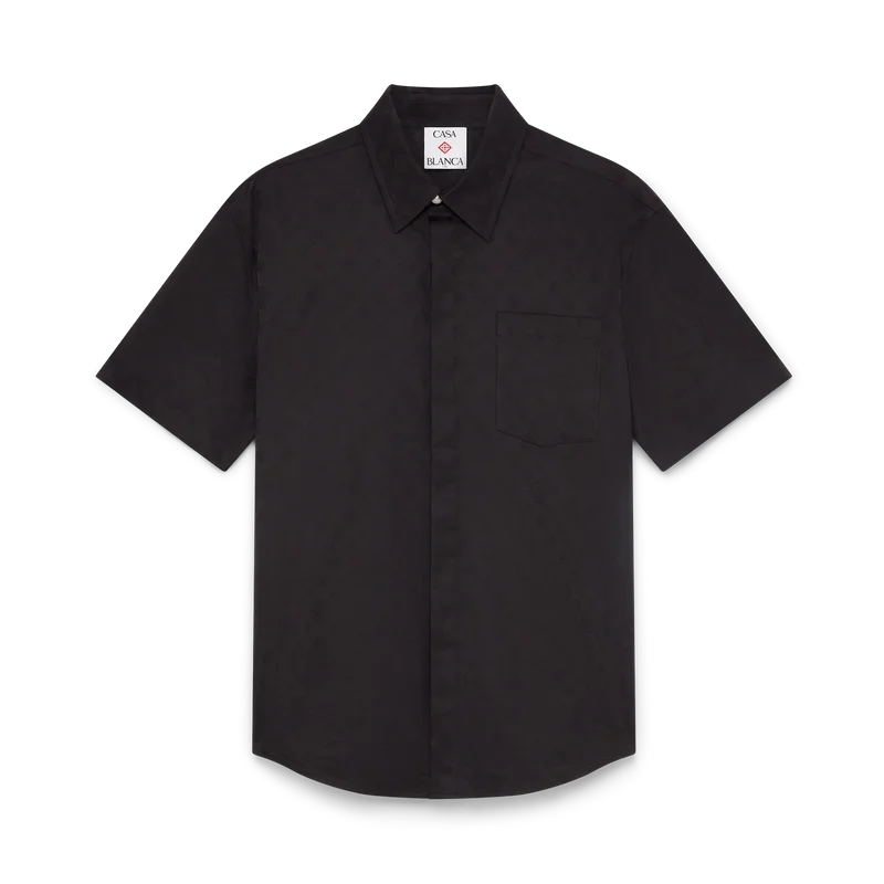 Das kurzärmelige Baumwollhemd mit Monogramm ist ein klassisches Design mit dem wiederkehrenden „Honeydew“-Logo des Hauses. Dieses Muster unterscheidet sich von unseren anderen Monogrammen, da es einzigartige Formen zu einem harmonischen Gesamtbild verbindet. Abgerundet wird das Design durch einen spitzen Kragen, einen Knopfverschluss, die charakteristischen Corozo-Knöpfe mit dem ineinander verschlungenen „CC“-Logo, eine Brusttasche und einen charakteristischen, goldumrandeten Perlmuttknopf am Kragen.