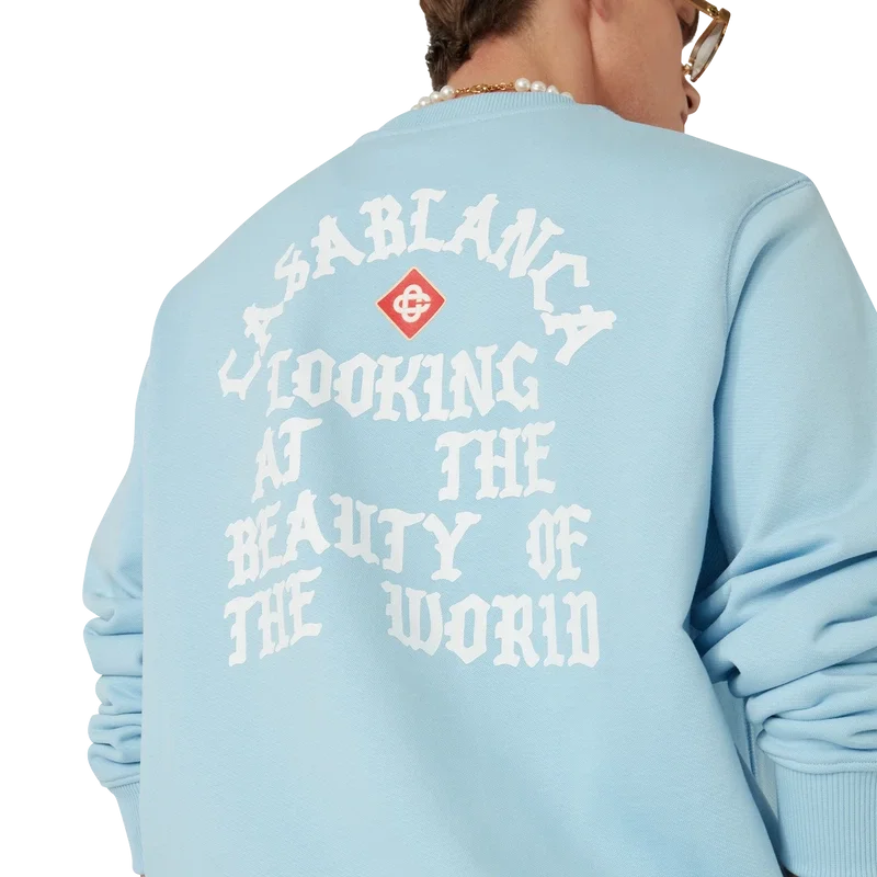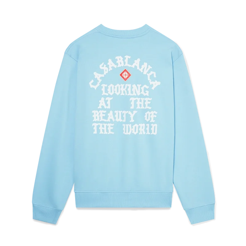 Das „Beauty of the World“-Sweatshirt ist ein bedrucktes Langarm-Modell mit dem charakteristischen Diamant-Logo des Hauses und dem Casablanca-Markenmotto in gotischer Schrift, inspiriert von der Street-Kultur. Abgerundet durch einen klassischen Rundhalsausschnitt sowie gerippte Bündchen und Saum.