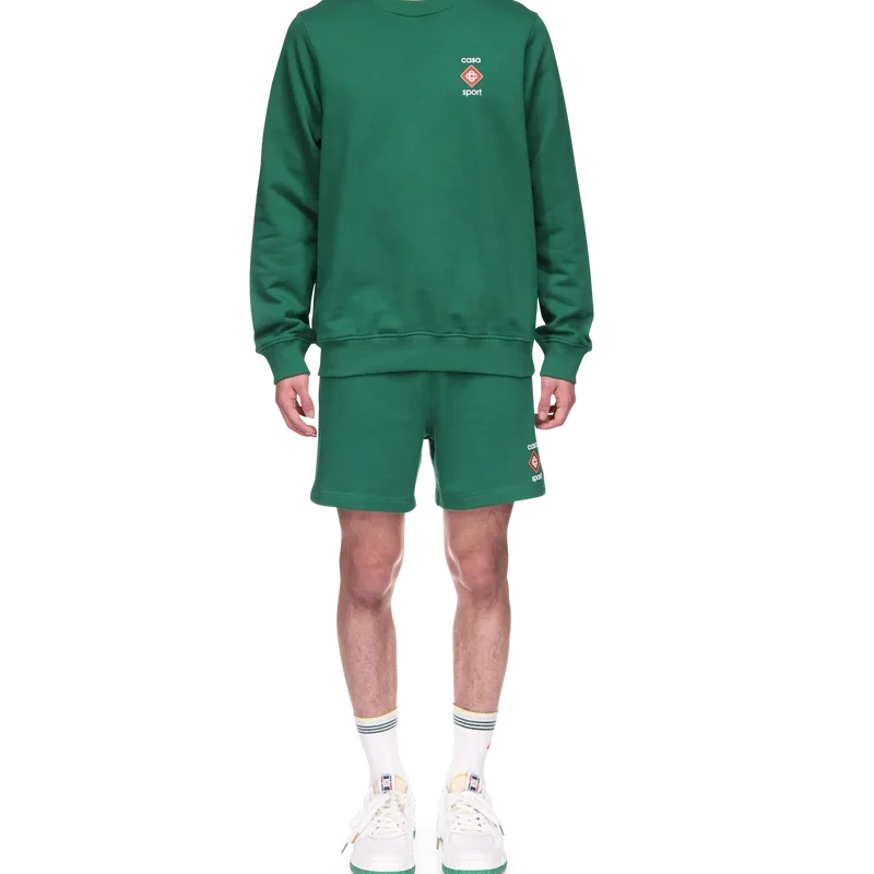 Das grüne Unisex-Sweatshirt mit Casa Sport-Logo im Siebdruck-Look interpretiert das Casablanca Paris-Logo sportlich neu und ist auf der linken Schulter aufgedruckt. Das Modell aus Bio-Baumwolle ist ein klassischer Langarm-Pullover mit Rundhalsausschnitt und wurde für eine lockere Passform entworfen.
