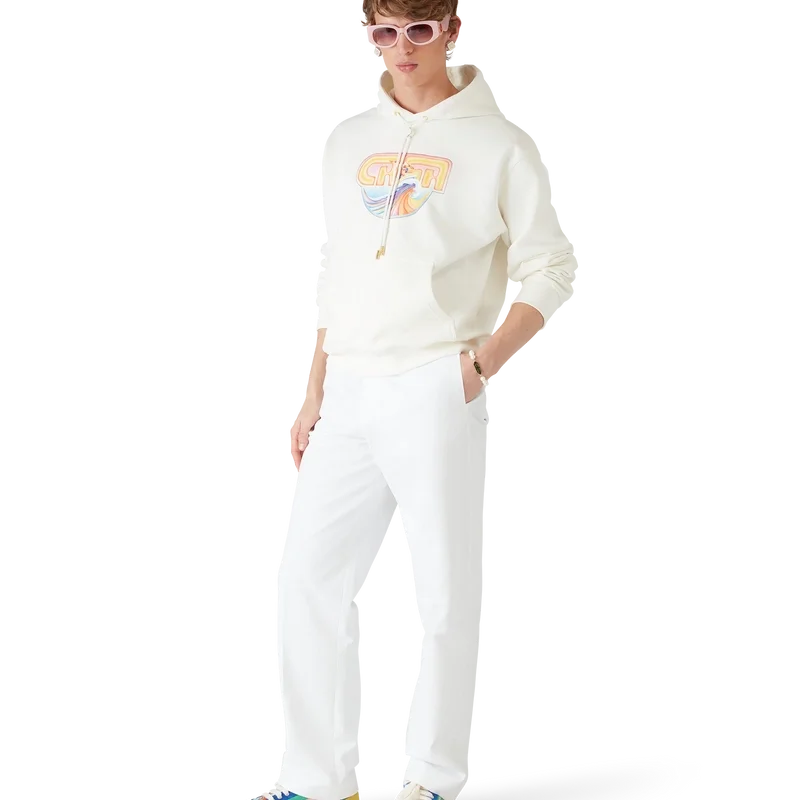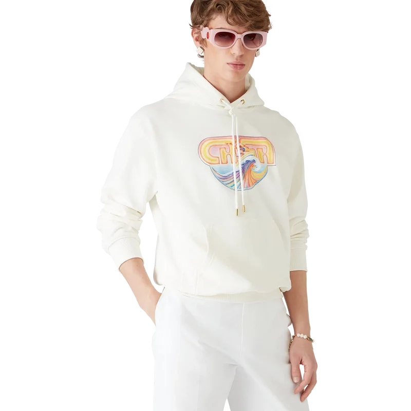 Das Casa Surf Kapuzensweatshirt ist ein bedrucktes Langarm-Modell aus Bio-Baumwollstoff mit saisonalen Motiven, inspiriert von vintage, sonnengebleichten Surfbrettern der 70er Jahre. Mit Kapuze, Kordelzug mit goldenen Enden, Kängurutasche sowie gerippten Bündchen und Saum.