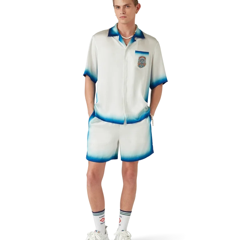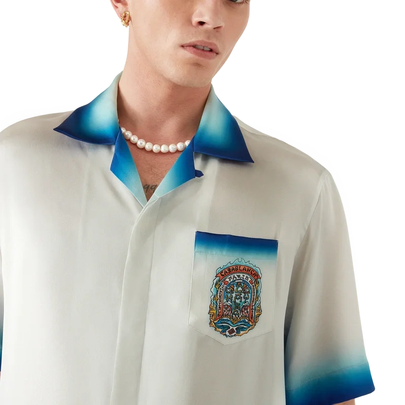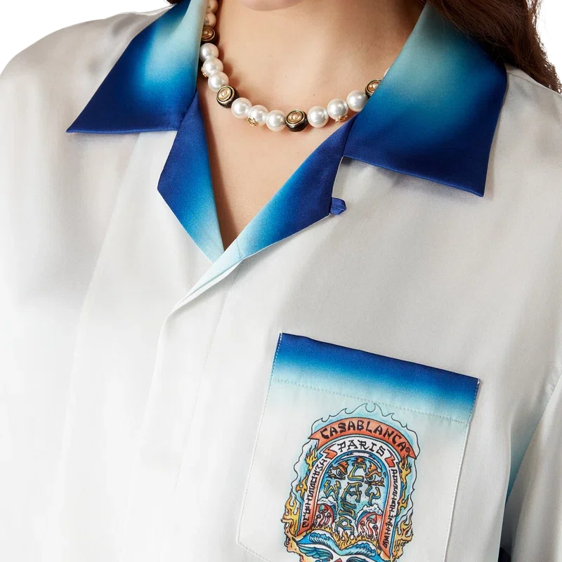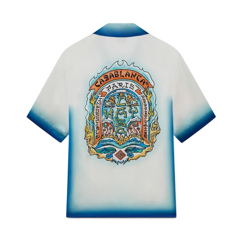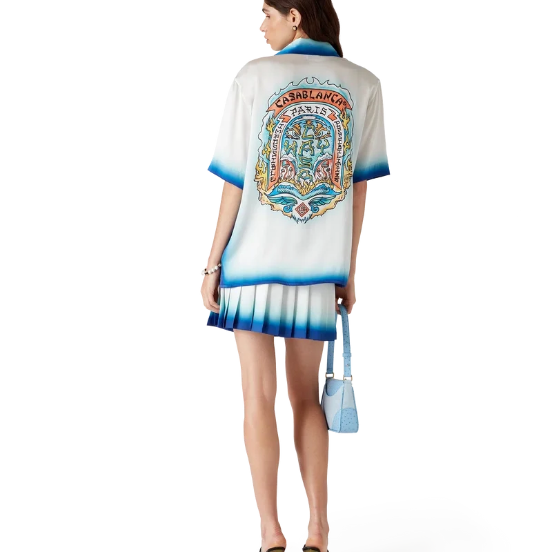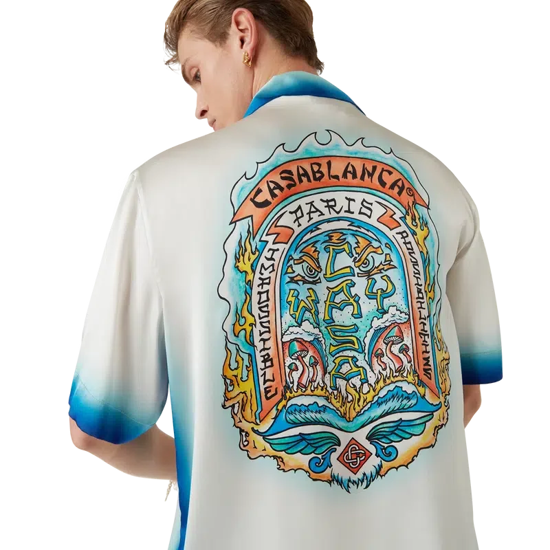 Das Casa Way Skate Seidenhemd ist ein kurzärmeliges Modell aus bedrucktem Seidensatin mit dem aktuellen Casa Way Skate-Motiv, inspiriert von klassischen kalifornischen Skate-Emblemen der 70er Jahre mit einem auslaufenden Rahmen.