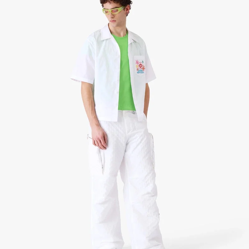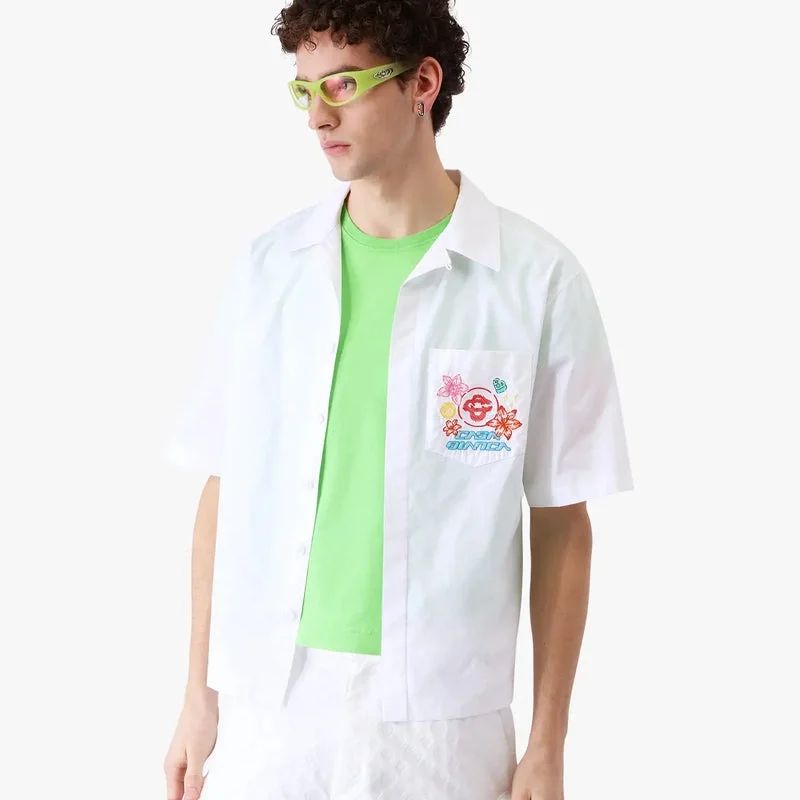 Das bestickte Kurzarmhemd „Collage D’icones Graphiques“ besticht durch ein raffiniertes Design mit Motiven, die die Ikonografie und Designelemente der neuen Saison widerspiegeln, darunter Interpretationen des Logos, des Cc-Smileys und der Orchideenblüte. Abgerundet wird das Design durch einen Kragen, einen Knopfverschluss und eine Brusttasche.