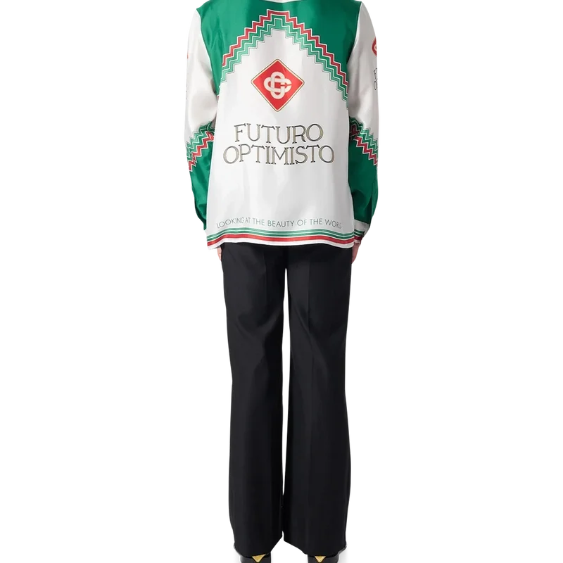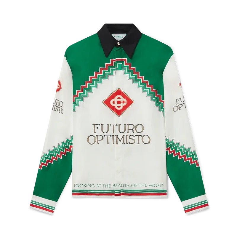 Das Futuro Optimisto Seidenhemd ist ein Key Piece aus der Frühjahr/Sommer-Kollektion 2023 mit dem Schriftzug „Looking at the Beauty of the World“ und dem charakteristischen Diamond Monogram des Hauses. Inspiriert von der ewigen Hoffnung des Geistes steht Futuro Optimisto für den Menschen im Einklang mit der Schöpfung. Veredelt mit unserem charakteristischen Kragen- und Manschettenverschluss mit goldgerahmten Perlknöpfen, verdeckter Knopfleiste und einem „Casablanca Paris“-Markenlabel.
