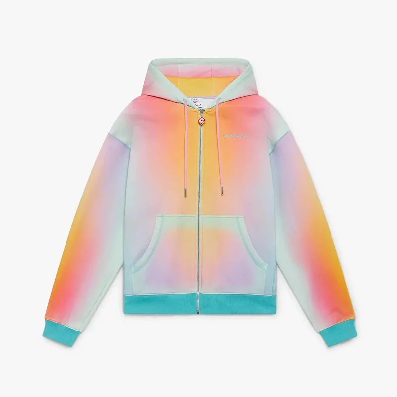 Abgerundet durch eine Kapuze mit Kordelzug, einen Reißverschluss mit dem charakteristischen Diamant-Logo-Reißverschlusszug des Hauses, das Casablanca-Logo, aufgesetzte Taschen sowie gerippte Bündchen und Saumdetails.