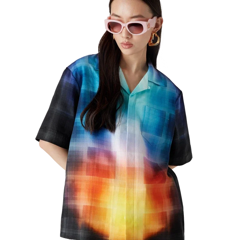 Kurzarmhemd aus Viskosemischung mit Farbverlauf