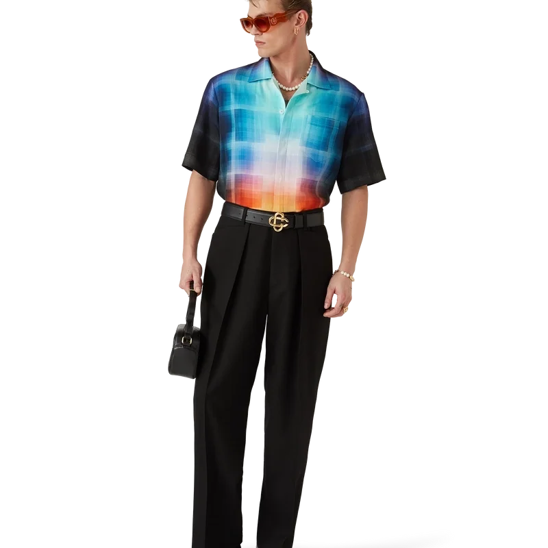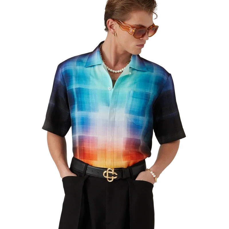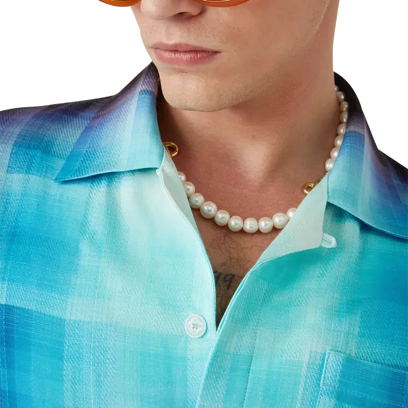 Das Hemd mit Karomuster im Farbverlauf ist ein bedrucktes Design mit den Farbverläufen der Saison, gefertigt aus einem Baumwollmischgewebe mit Karomuster. Abgerundet durch einen Kubanerkragen, eine Brusttasche, einen verdeckten Knopfverschluss und Corozo-Knöpfe mit dem ineinander verschlungenen Cc-Logo.
