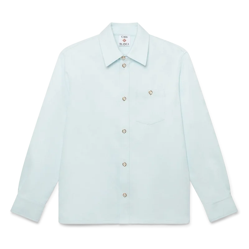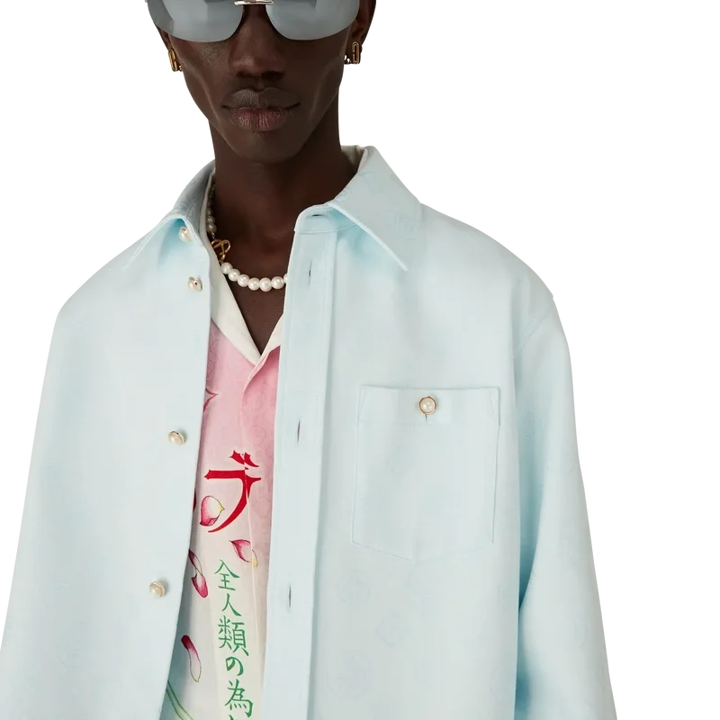 Das Langarmhemd aus Baumwolle mit Monogramm ist ein klassisches Design mit dem wiederkehrenden Honeydew-Logo des Hauses. Dieses Muster unterscheidet sich von unseren anderen Monogrammen, da es einzigartige Formen zu einem einheitlichen Muster kombiniert. Abgerundet wird es durch einen spitzen Kragen, einen Knopfverschluss, eine Brusttasche und die charakteristischen goldgerahmten Perlenknöpfe.