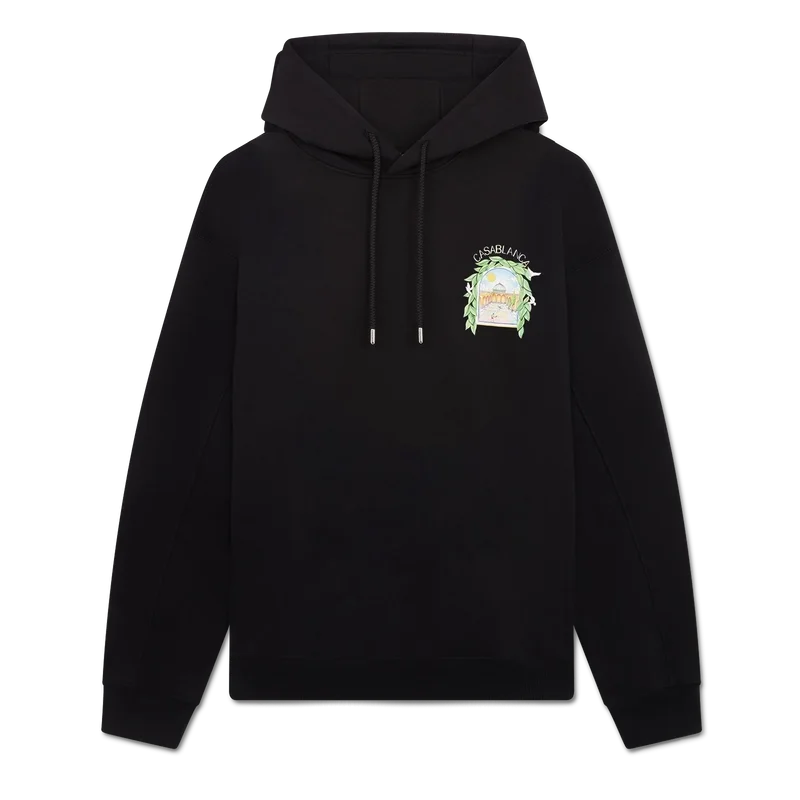 Das Casa L’arche Kapuzensweatshirt ist ein raffiniertes, bedrucktes Langarm-Design mit dem saisonalen Kunstwerk des Hauses und Designelementen wie dem Bogen, der Natur, der Architektur und Tennis auf Vorder- und Rückseite. Abgerundet wird es durch eine Kapuze, einen Kordelzug mit goldenen Enden sowie gerippte Bündchen und Saum.
