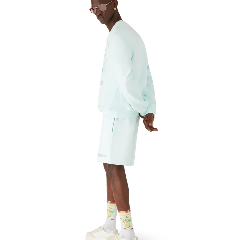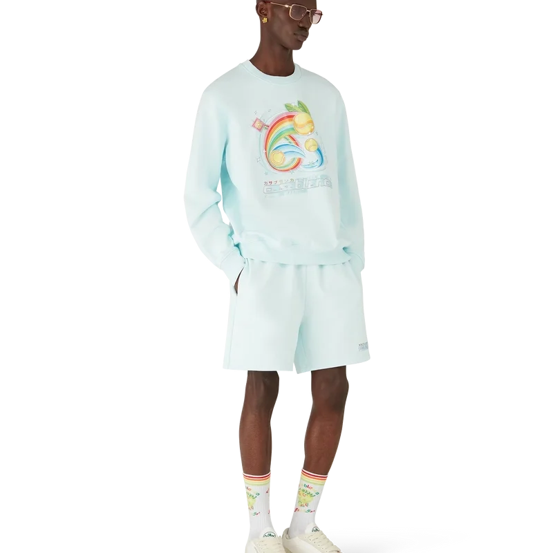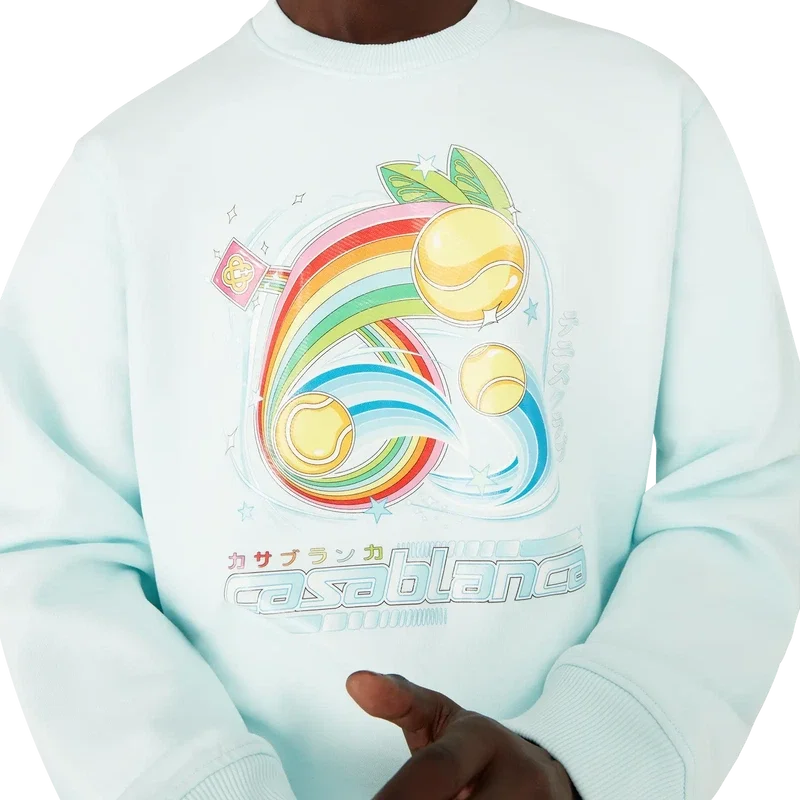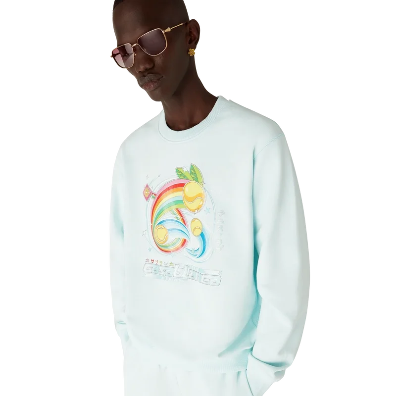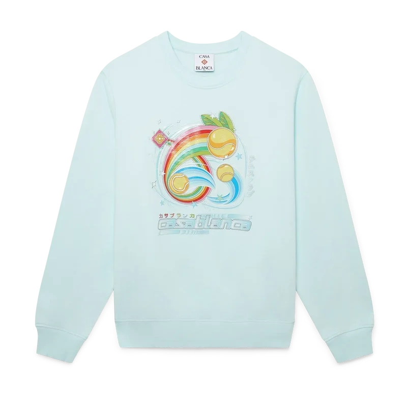 Das Manga-Tennisball-Sweatshirt ist ein Langarm-Modell aus Bio-Baumwollstoff mit saisonalen Motiven, die die Welt von Kawaii und Manga erkunden und mit der Ikonografie von Casablanca spielen, wobei Tennisbälle als Orangen verwendet werden – für einen lustigen Twist. Abgerundet durch einen klassischen Rundhalsausschnitt.