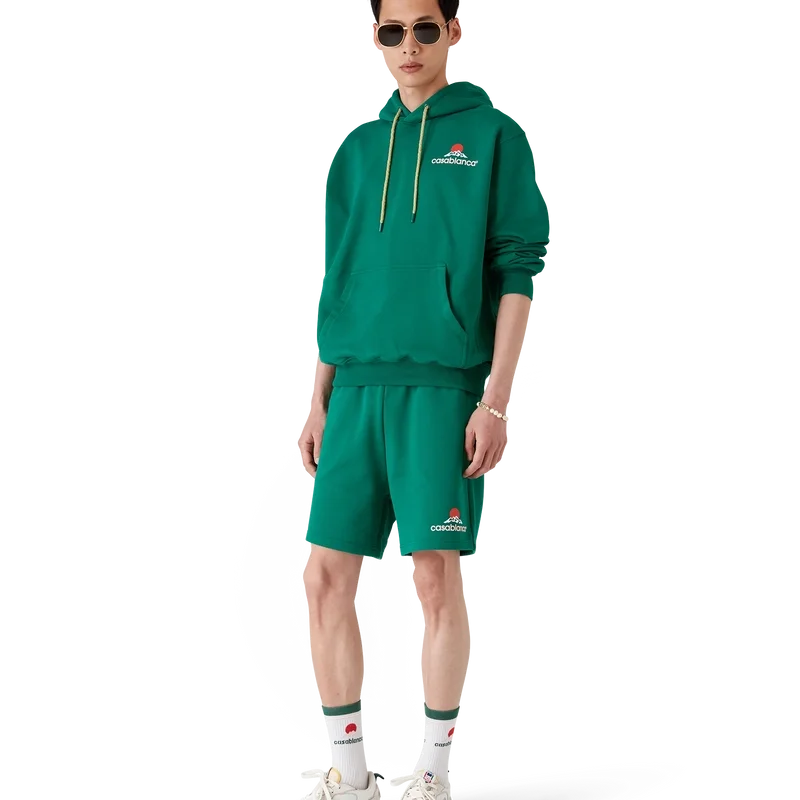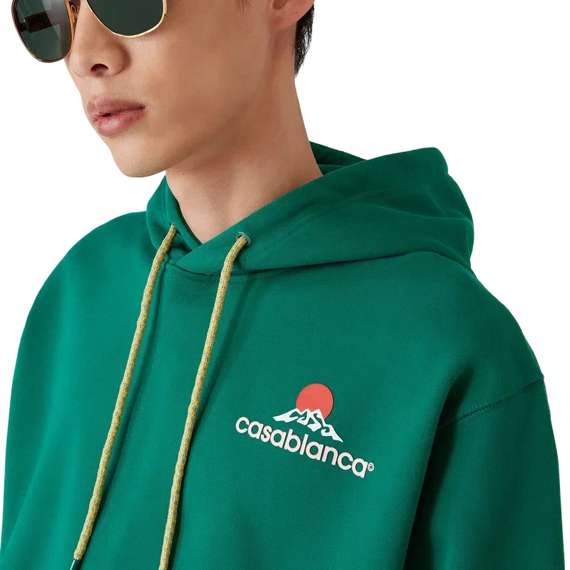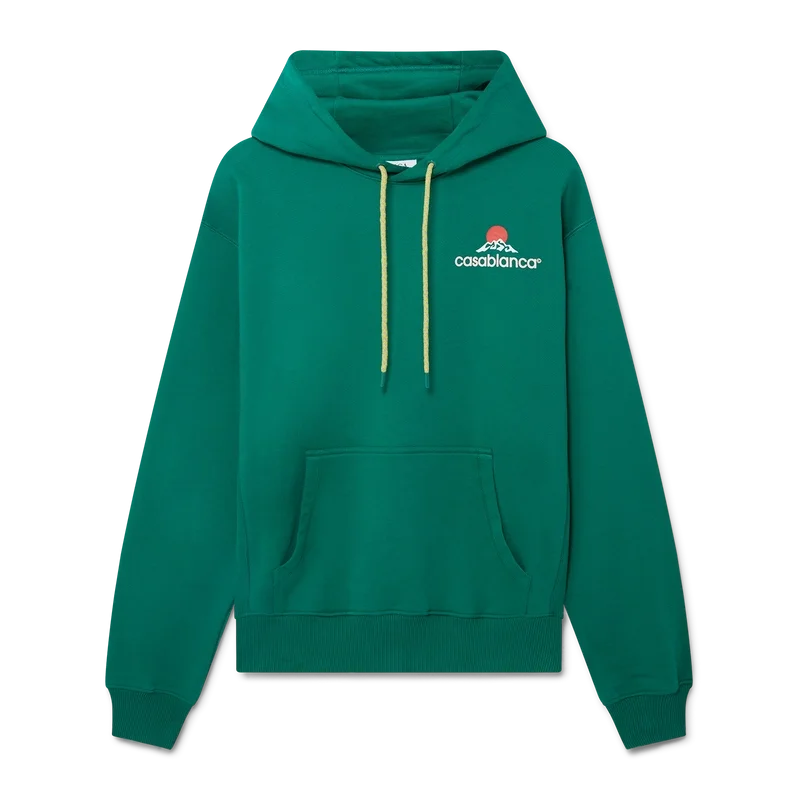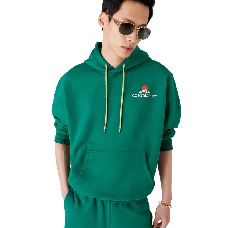 Das Montagne Kapuzensweatshirt ist ein langärmeliges Modell aus Bio-Baumwollstoff und ziert das saisonale Design des Hauses – ein Logo, das auf den ersten Blick wie ein Berg aussieht, bei genauerem Hinsehen jedoch „Casa“ bildet. Mit Kapuze mit Kordelzug, Känguru-Tasche vorne, gerippten Bündchen und Saum.