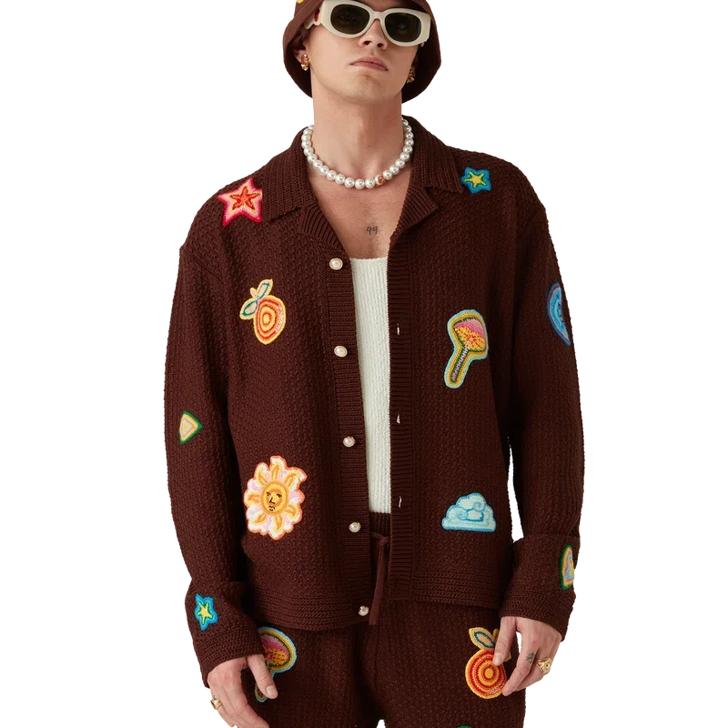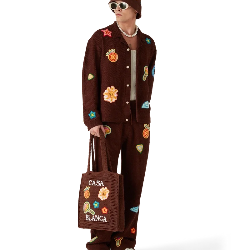 Das Motif Crochet Hemd ist ein langärmeliges Modell aus merzerisiertem Baumwollstoff mit Häkelmotiven. Es ist mit Motiven der klassischen Designelemente des Hauses, den charakteristischen goldenen Perlenknöpfen sowie einem gerippten Kragen und gerippten Bündchen versehen.