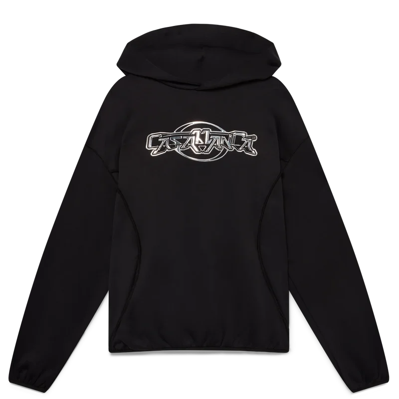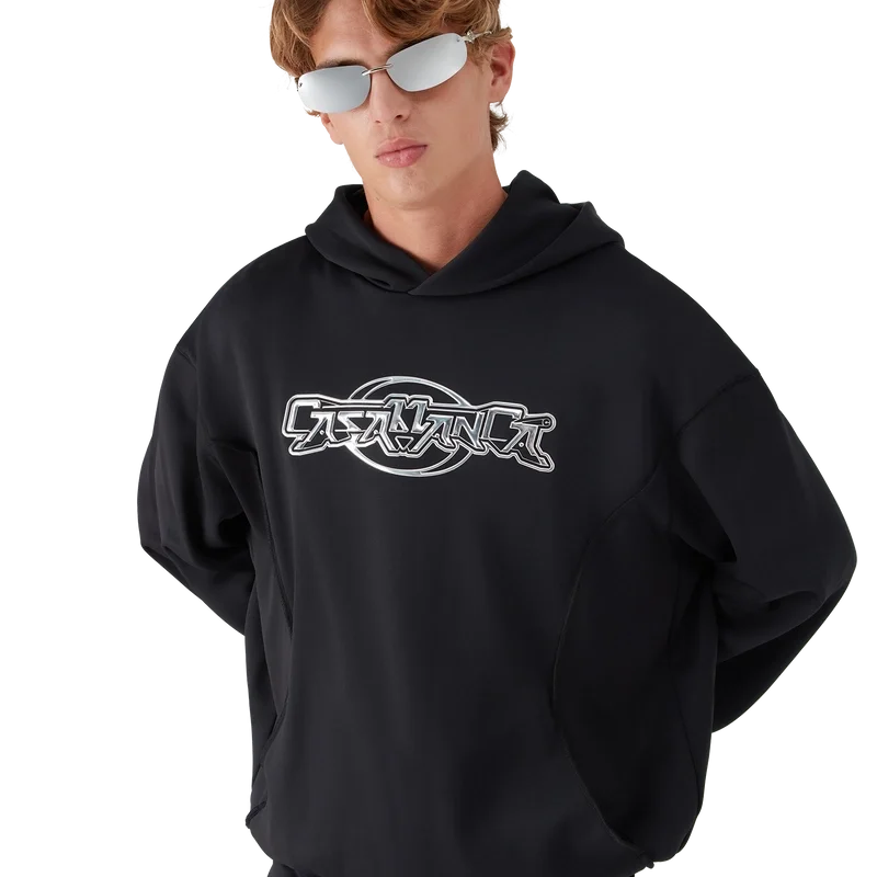 Das Oversized-Sweatshirt mit Kapuze und Einsätzen ist ein langärmeliges Design mit dem Metall-Warped-Logo des Hauses. Abgerundet durch eine Kapuze, aufgenähte Einsätze, eine Kängurutasche sowie elastische Bündchen und Saum.