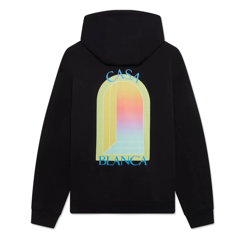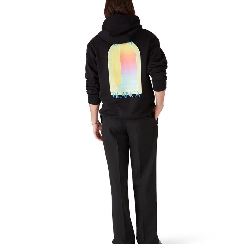 Das Gradient Arch Hooded Sweatshirt ist ein bedrucktes klassisches Design mit dem charakteristischen Bogen-Print des Hauses in der Farbverlaufsvariante der Saison. Abgerundet durch eine Kapuze, einen Kordelzug mit goldenen Enden, gerippte Bündchen und Saum sowie eine Kängurutasche.