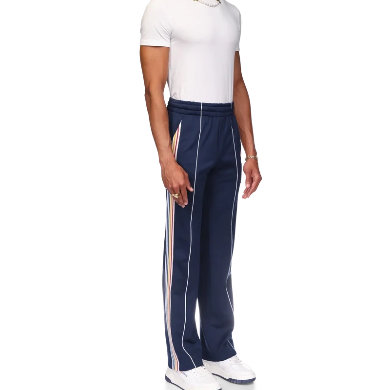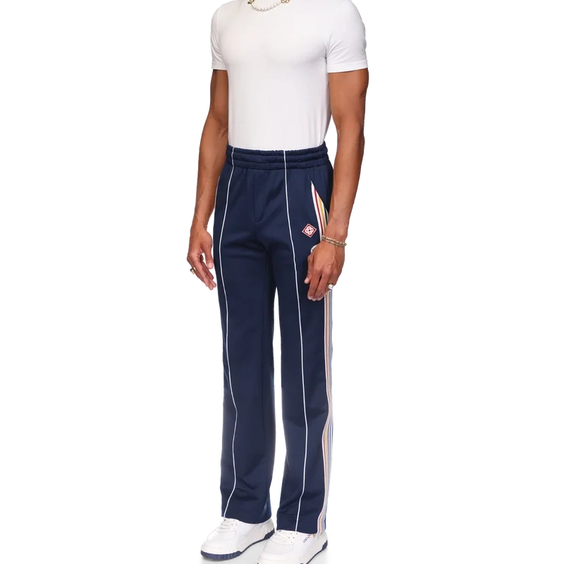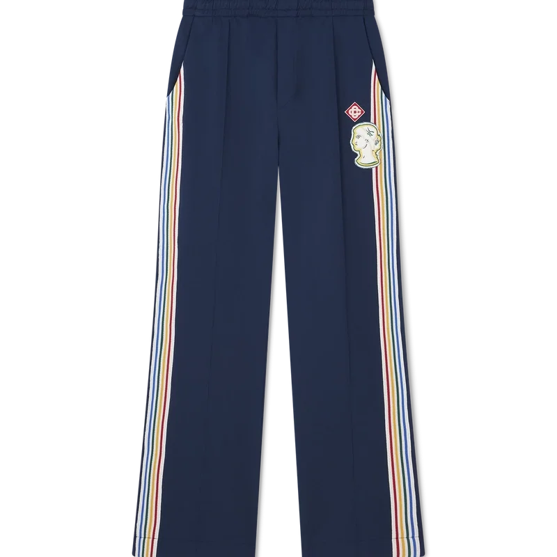 Die Varsity-Jogginghose ist ein von Sportbekleidung inspiriertes Modell mit geradem Bein aus Trikotstoff. Mit elastischem Bund mit Kordelzug, schrägen Seitentaschen, weißen Streifen an den Vordernähten und mehrfarbigen Streifen an den Seiten.