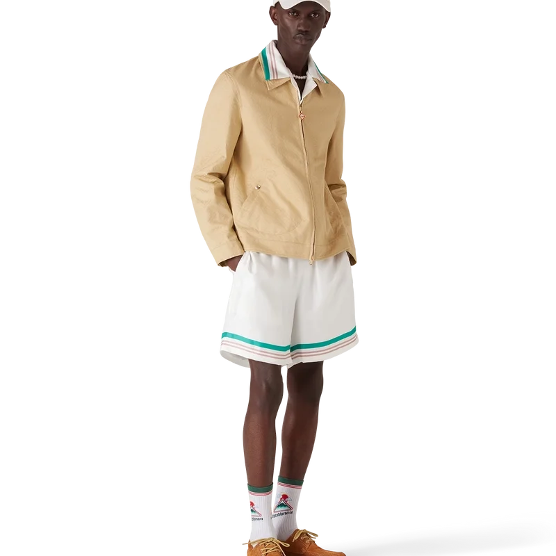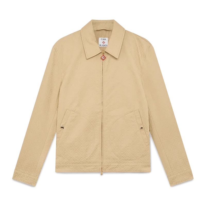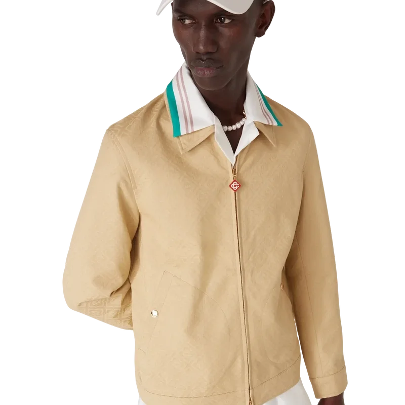 Die Baumwoll-Monogramm-Jacquard-Jacke ist ein langärmeliges Blouson-Modell aus Baumwoll-Jacquard-Stoff. Mit Reißverschluss, Trichterkragen, vergoldeten Beschlägen und schrägen Pattentaschen.