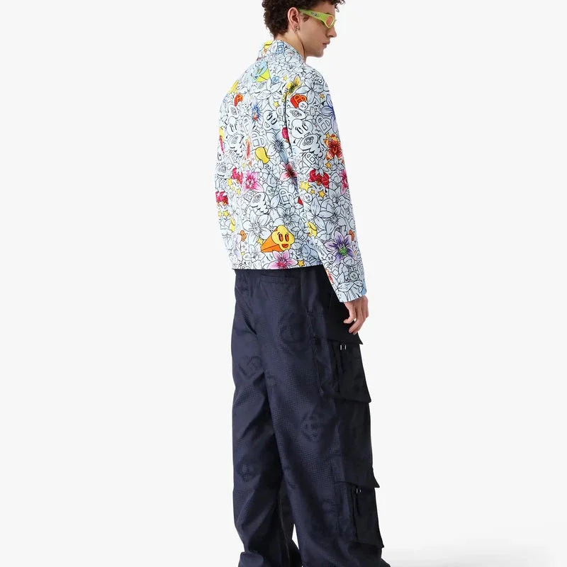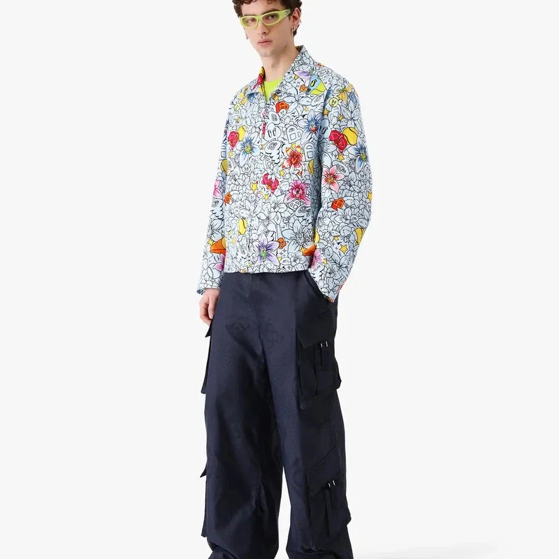 Die Collage D’icones Graphiques Repeat Zip-Up Jacke ist ein langärmeliges Design mit saisonalen Grafiken, die die Ikonografie und Designelemente der neuen Saison darstellen, darunter Interpretationen des Logos, des Cc-Smile und der Orchideenblüte. Abgerundet wird das Design durch einen Kragen, einen Reißverschluss mit dem charakteristischen Diamant-Logo-Reißverschlusszug des Hauses, einen Kordelzug am Saum und Vordertaschen mit halbem Reißverschluss.