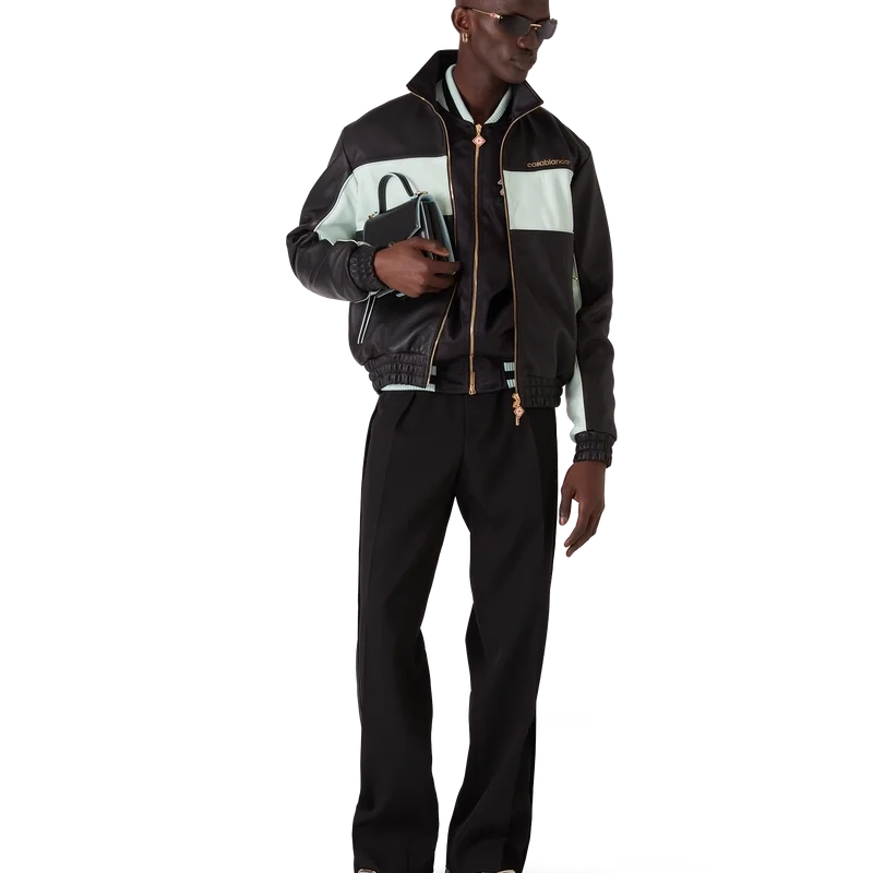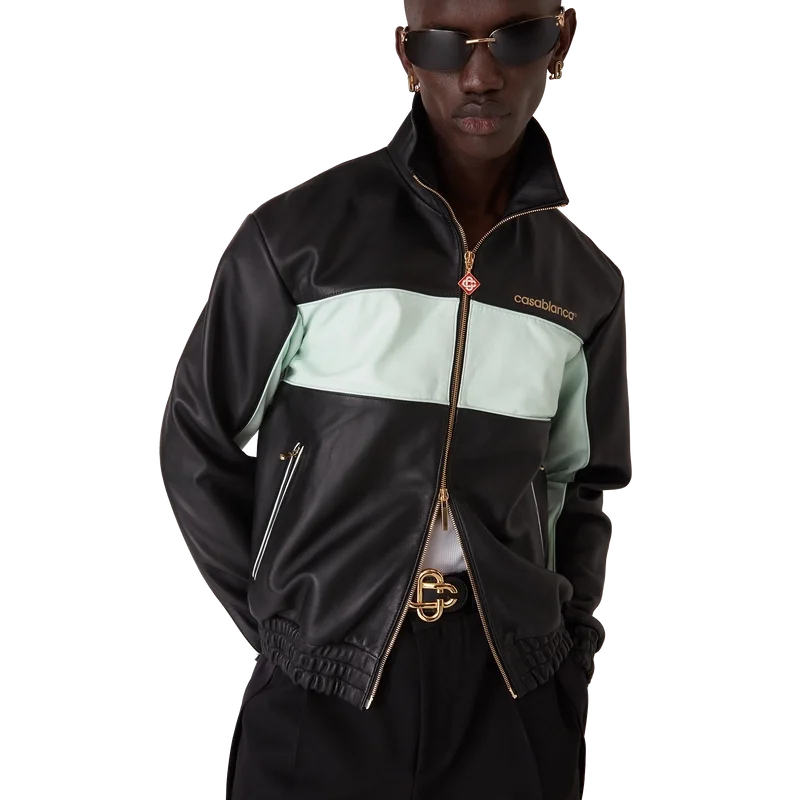 Die Leder-Trainingsjacke ist ein langärmeliges Modell aus Lammnappa. Mit Futter, Trichterkragen, Reißverschluss mit dem charakteristischen Diamant-Logo des Hauses, schrägen Leistentaschen sowie elastischen Bündchen und Saum.