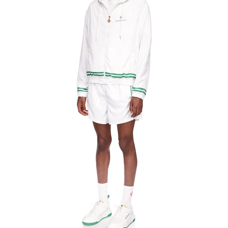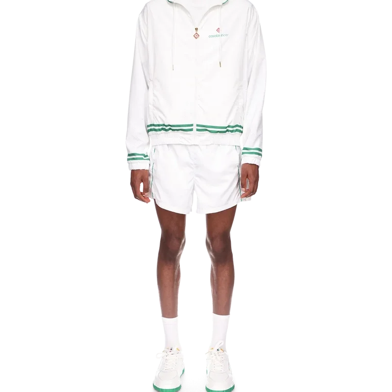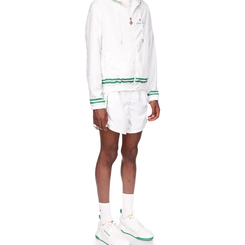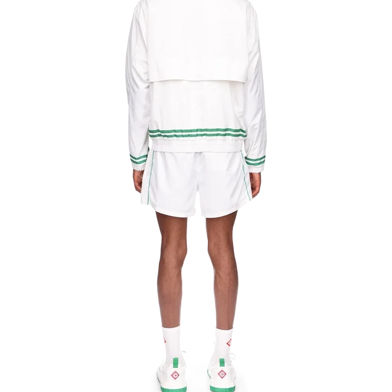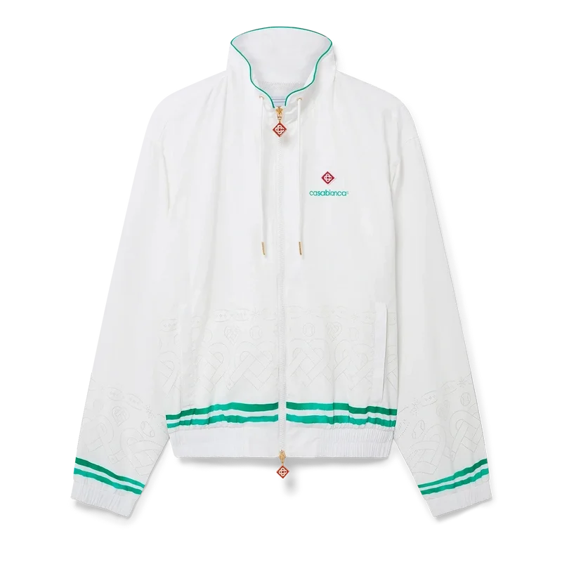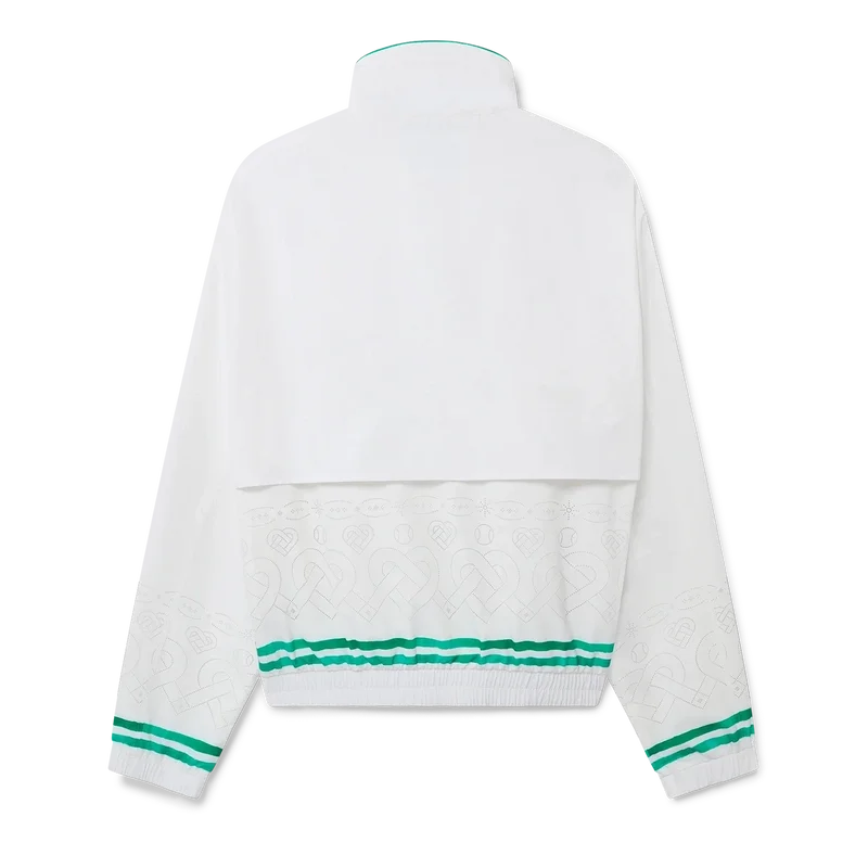 Die Trainingsjacke mit Laserdetails ist ein Sportbekleidungsdesign mit dem charakteristischen Diamond Monogram und Herz-Monogramm des Hauses als lasergeschnittene Details. Hergestellt aus unserem charakteristischen leichten Taftstoff, komplett mit Stehkragen, Kordelzug mit goldenen Enden, Reißverschluss vorne, vertikalen Leistentaschen sowie gerippten Bündchen und Saum mit Kontrastdetails.