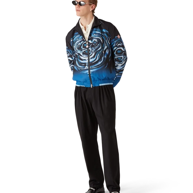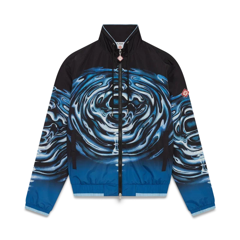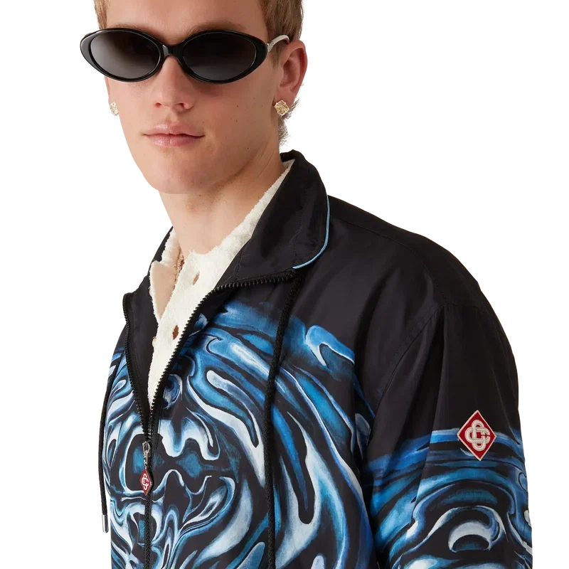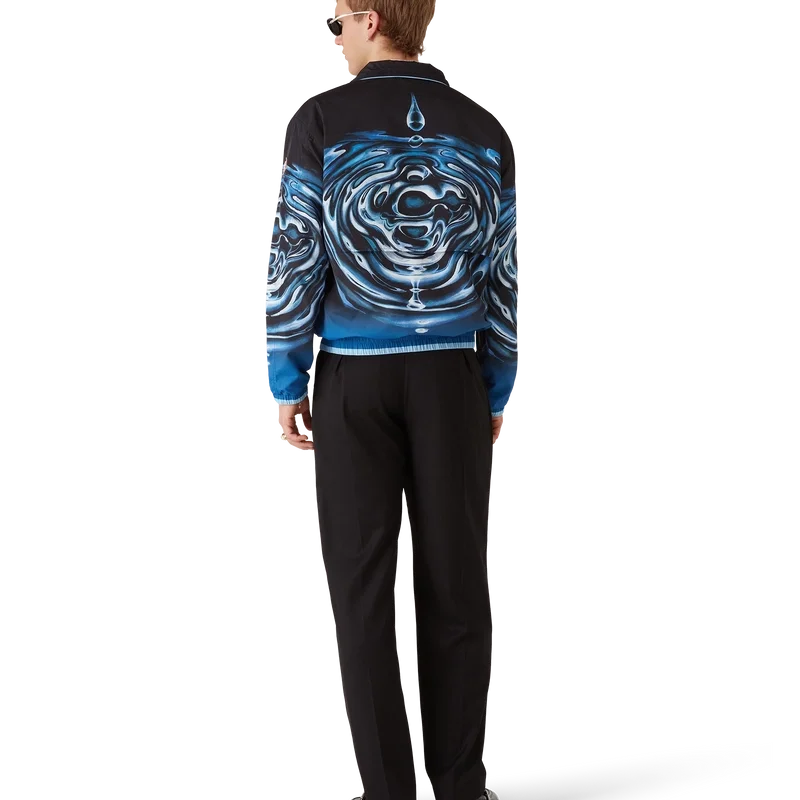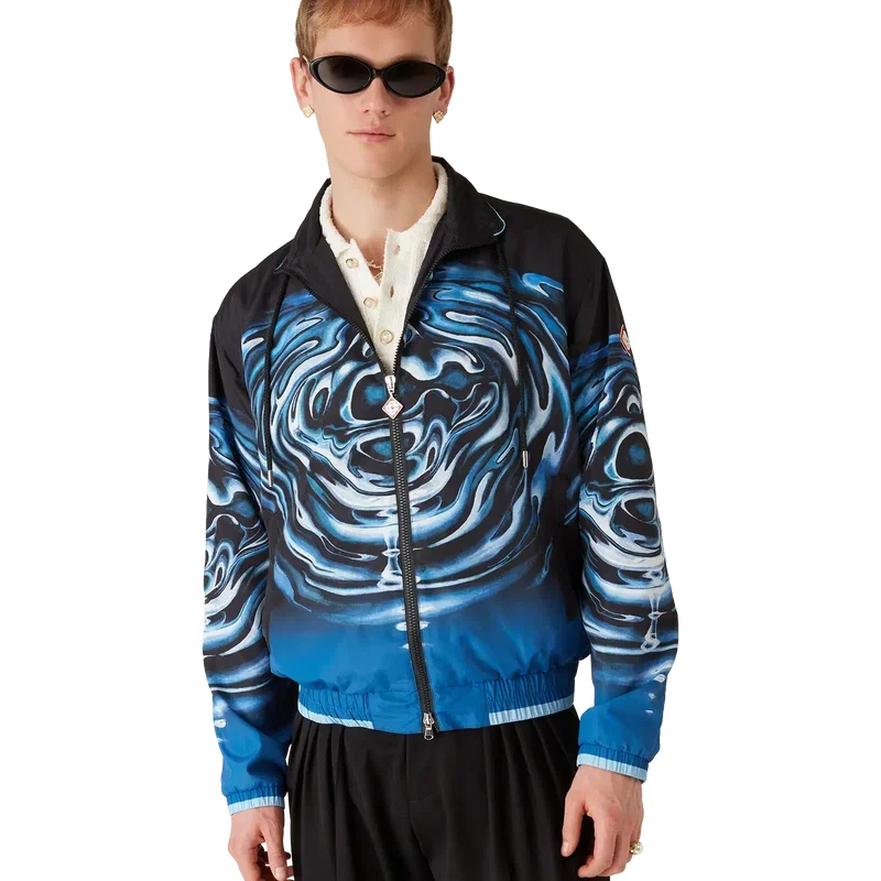 Die Warped Logo Ripple Windbreaker Jacke ist ein langärmeliges Design mit dem charakteristischen Diamant-Logo des Hauses und dem saisonalen „Water Atlantis“-Motiv – einer Mischung aus digitalen und handgemalten Elementen, bei der das CC-Logo als Wellen im Wasser dargestellt ist.