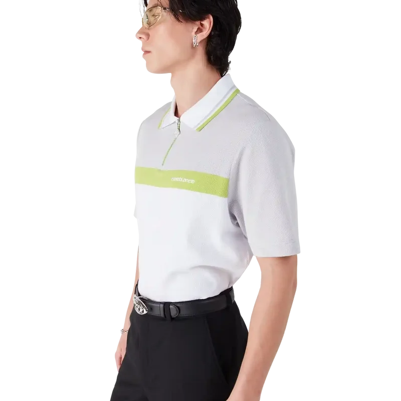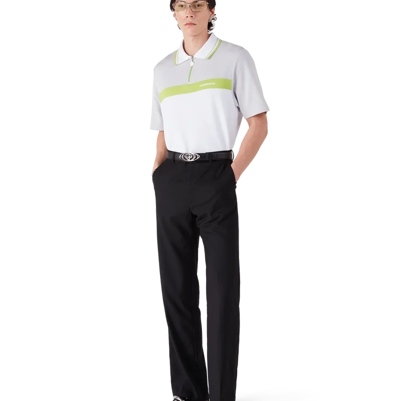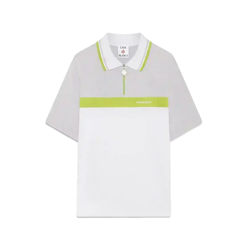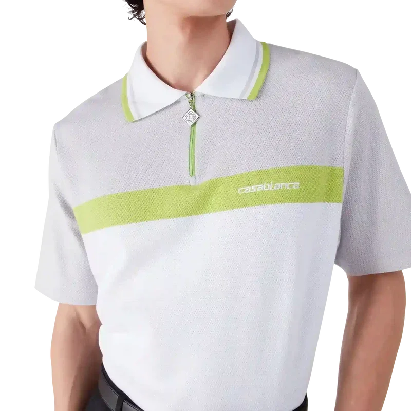 Das graue Kurzarm-Poloshirt besticht durch sein raffiniertes Design mit dem „Casablanca“-Logo des Hauses und verkörpert dessen unverwechselbaren Ansatz für gehobene Sportbekleidung. Es besticht durch einen grau-weißen Farbblock, einen klassischen gerippten Kragen, einen Reißverschluss mit Reißverschlusslasche im „Diamond“-Logo des Hauses sowie eine lockere Silhouette.