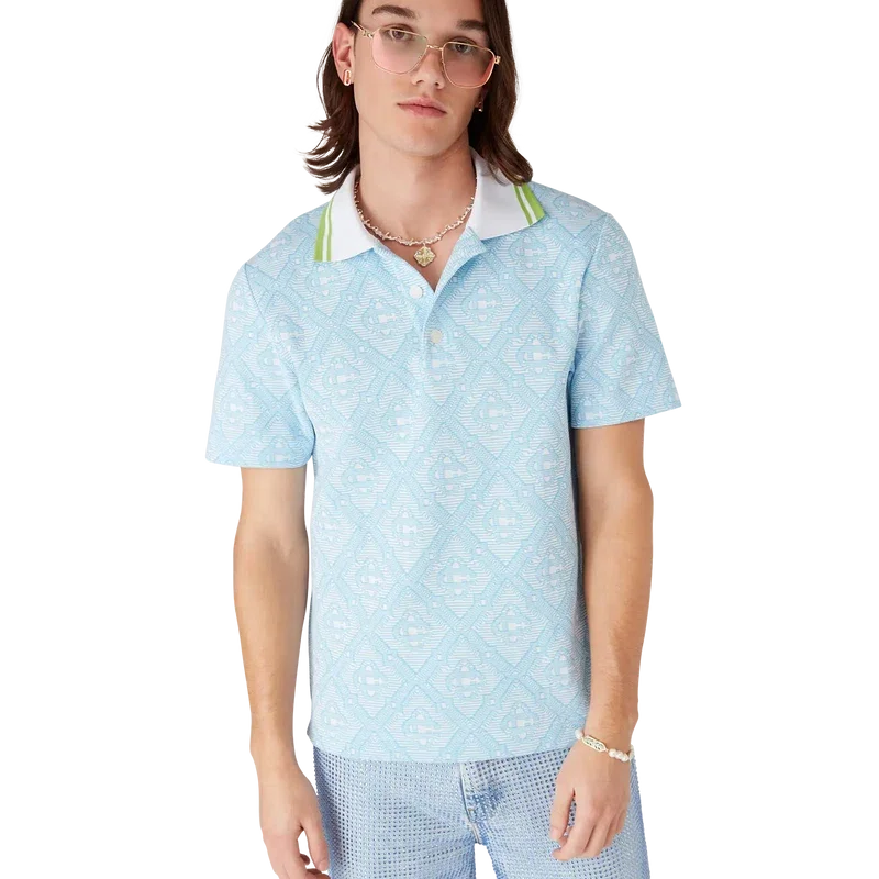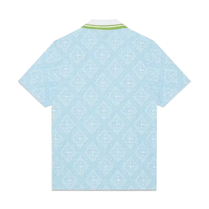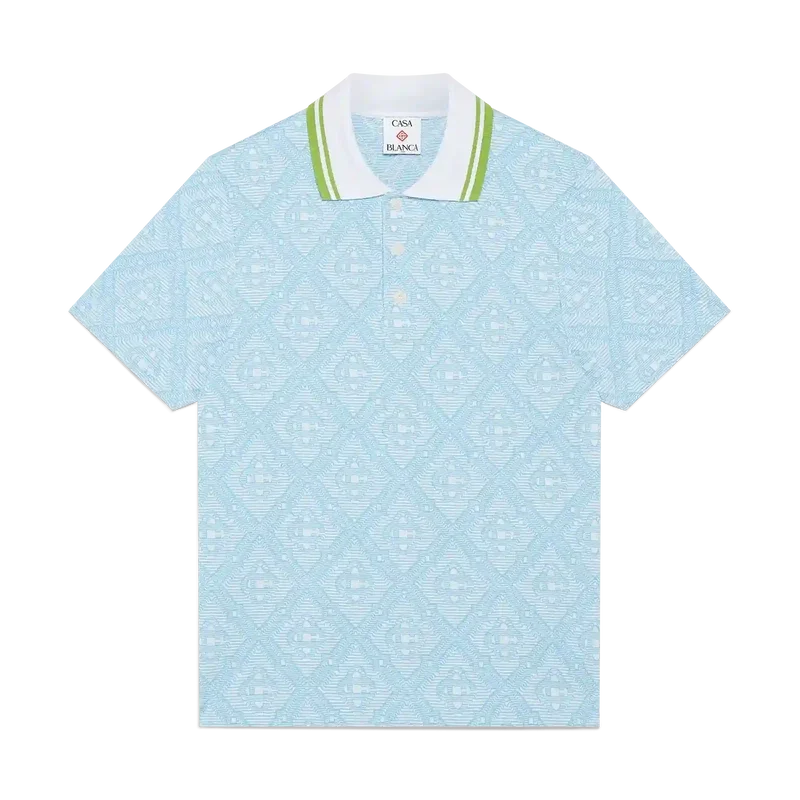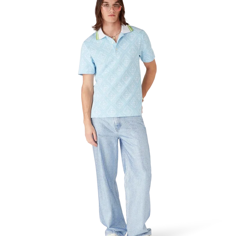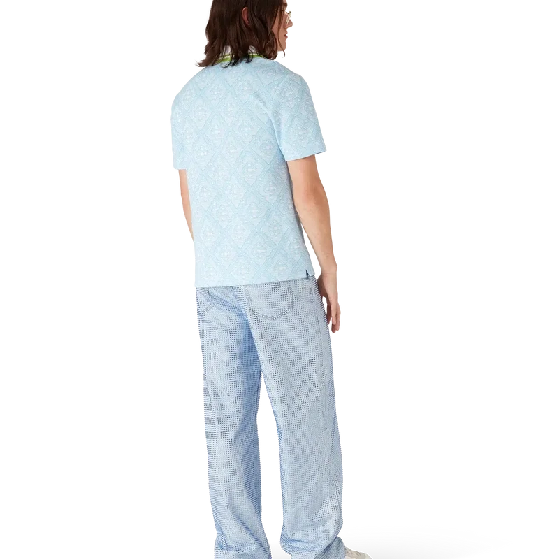 Das hellblaue Jacquard-Poloshirt mit kurzen Ärmeln ist ein klassisches Design mit dem charakteristischen Monogramm des Hauses. Abgerundet wird es durch einen gerippten Kragen mit kontrastierenden Streifen an den Kanten, einen Knopfverschluss und Corozo-Knöpfe mit dem ineinander verschlungenen CC-Logo.