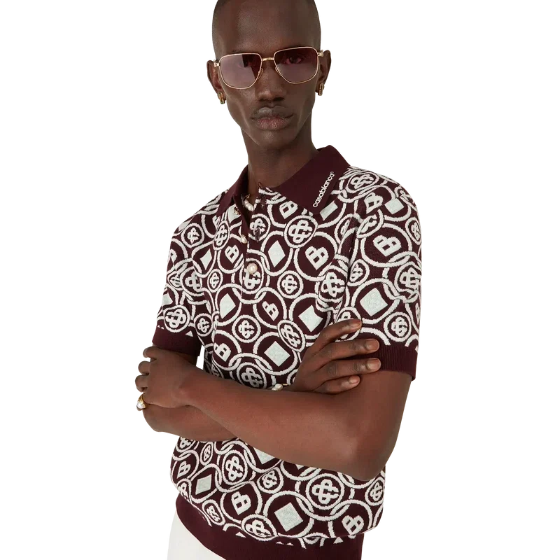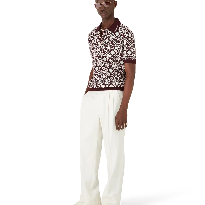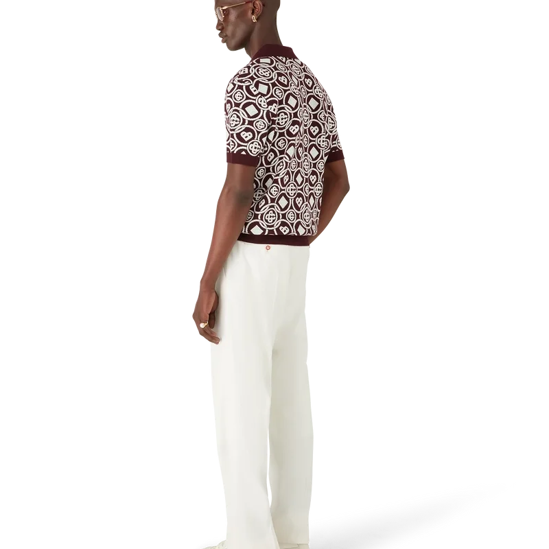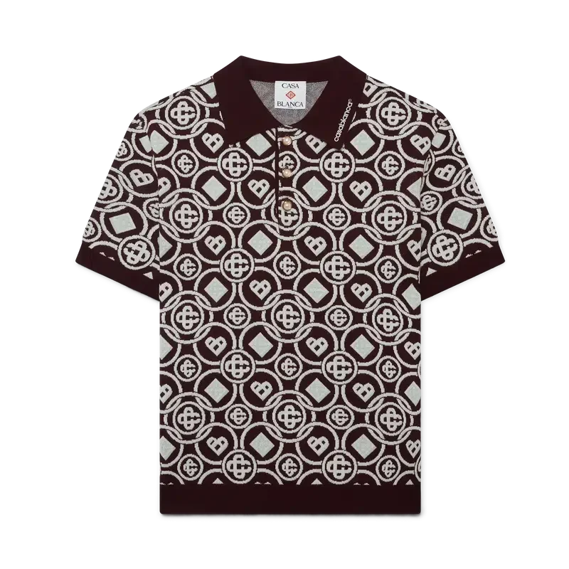 Das Monogram-Poloshirt aus Baumwollstrick ist ein kurzärmeliges Modell mit dem neuen Honeydrew-Logo-Muster der Saison – dieses Muster unterscheidet sich von unseren anderen Monogrammen, da es einzigartige Formen zu einem einheitlichen Muster kombiniert. Es handelt sich eher um ein ikonisches Design. Abgerundet wird es durch einen Knopfverschluss, charakteristische goldgeränderte Perlknöpfe sowie gerippte Details an Kragen, Ärmelbündchen und Saum.