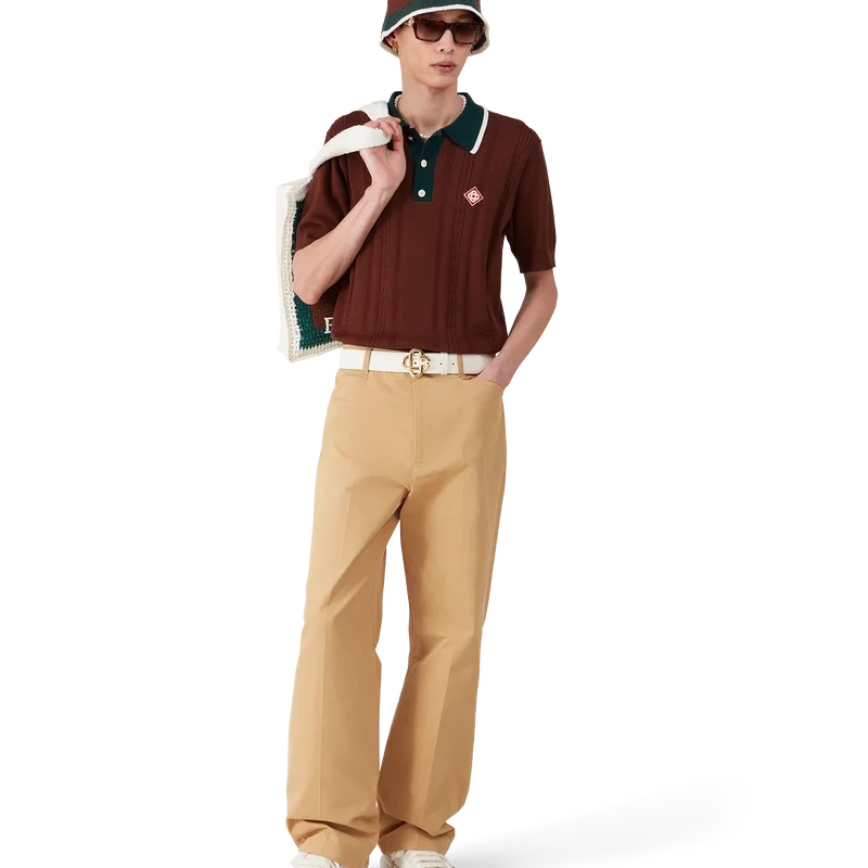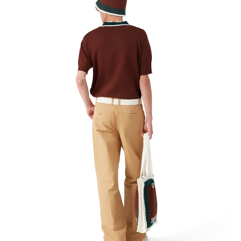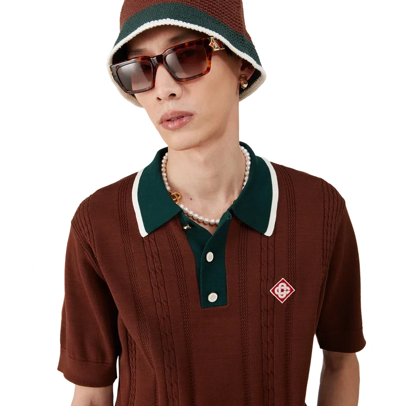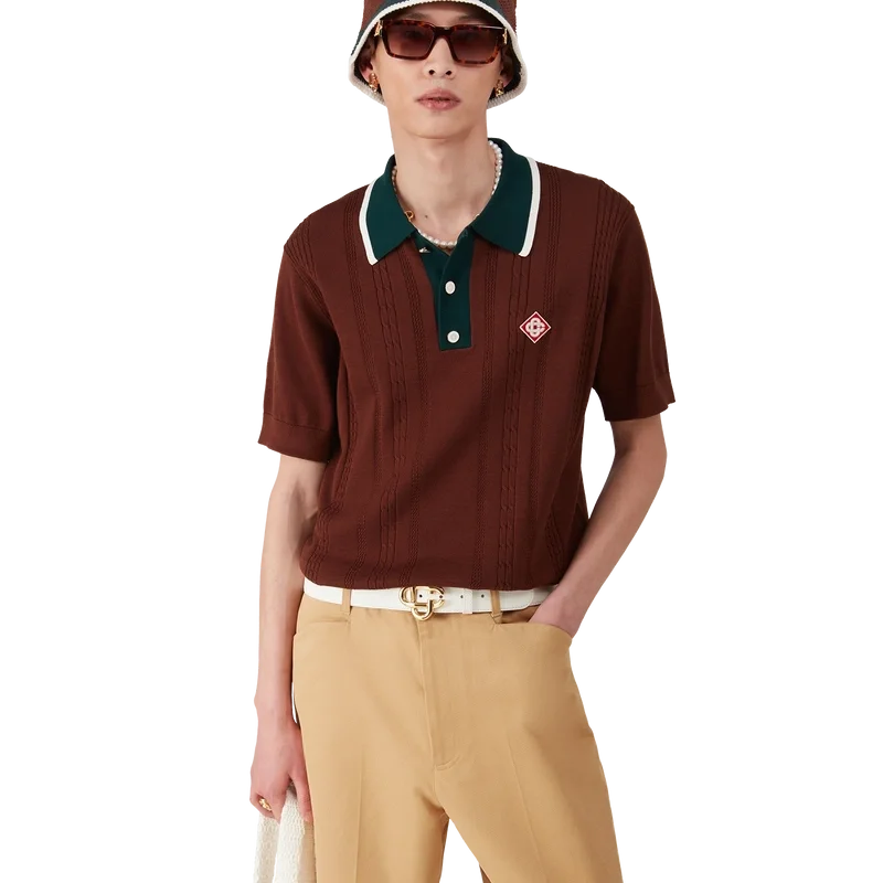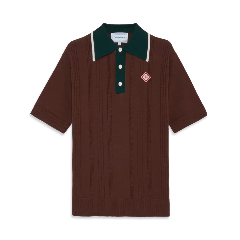 Das Oversized-Poloshirt mit Zopfmuster ist ein kurzärmeliges Modell aus Baumwollstrick mit dem charakteristischen Rautenlogo des Hauses. Abgerundet wird es durch die charakteristischen goldumrandeten Perlknöpfe, eine Knopfleiste mit drei Knöpfen, eine kontrastierende Rippleiste und einen Kragen mit Kantenverzierung.