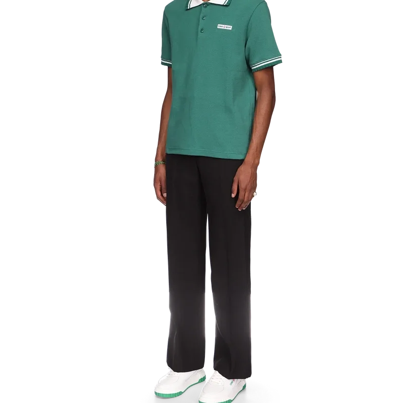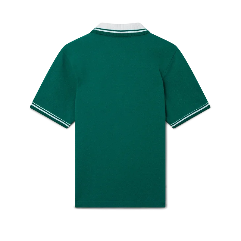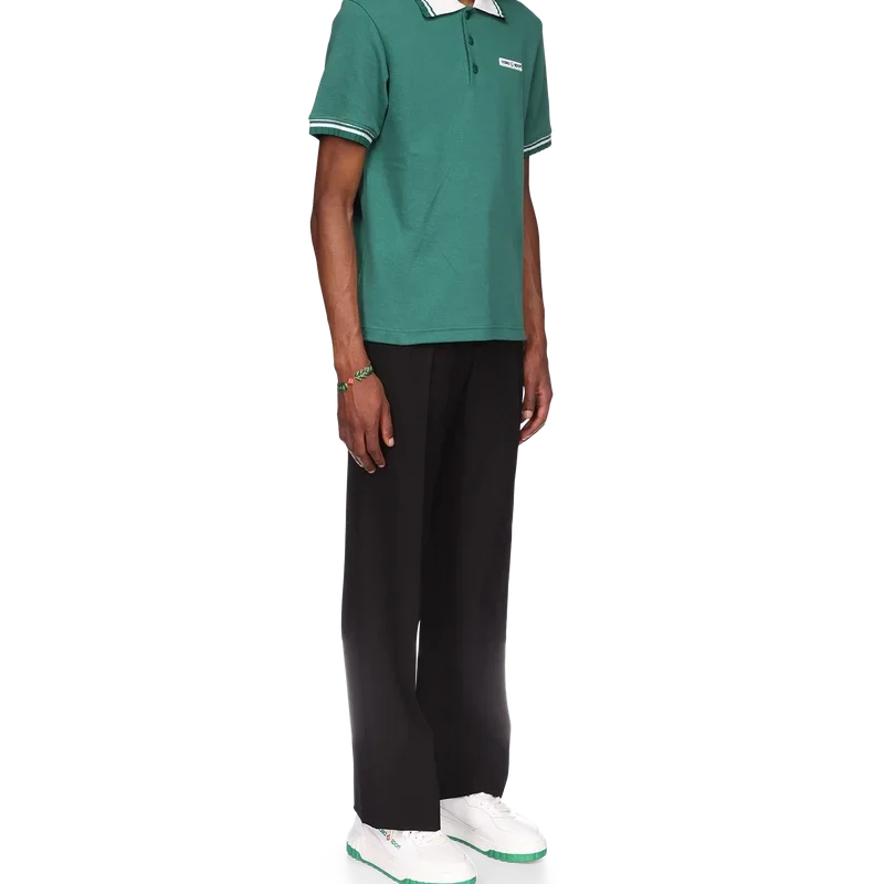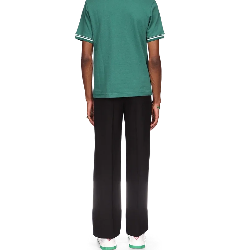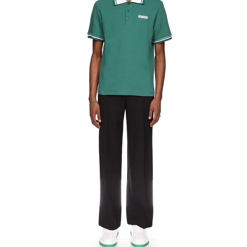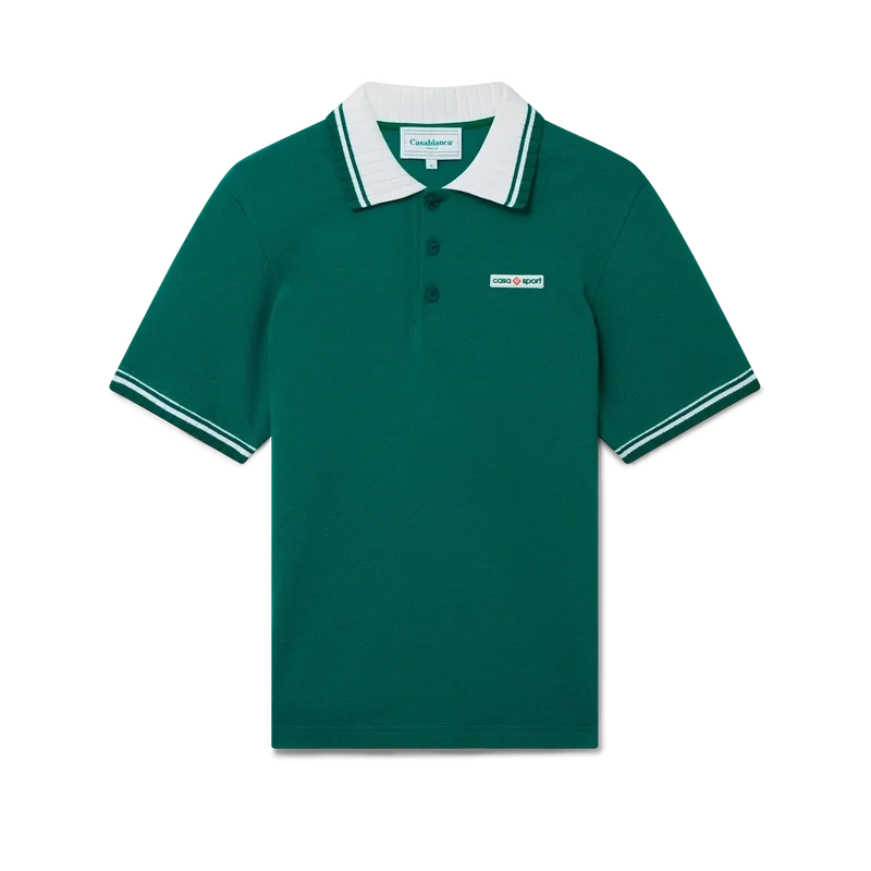 Das Piqué-Poloshirt ist ein klassisches Modell mit dem charakteristischen Casa Sport-Logo des Hauses. Es ist aus Bio-Baumwoll-Piqué gefertigt und verfügt über kontrastfarbene Rippbündchen an Kragen und Ärmelbündchen sowie eine Knopfleiste mit drei Knöpfen.