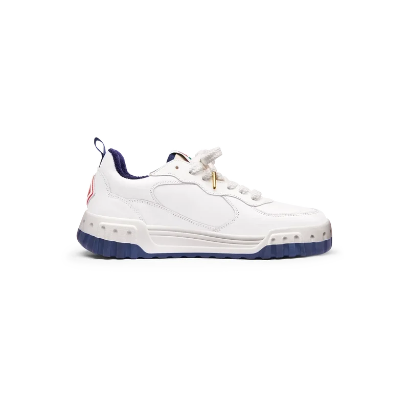 Die Designsprache des Court Sneakers spiegelt die ikonischen Silhouetten der 90er Jahre wider. Die Farben der Gummisohle sind eine Kombination aus den raffinierten Codes des Tennissports und der klassischen Architektur und schaffen eine einheitliche Farbpalette für den gesamten Schuh, wobei der Fokus auf Primärfarben liegt, die durch Tennisweiß abgesetzt werden, um eine sportlich orientierte Farbgeschichte zu schaffen.