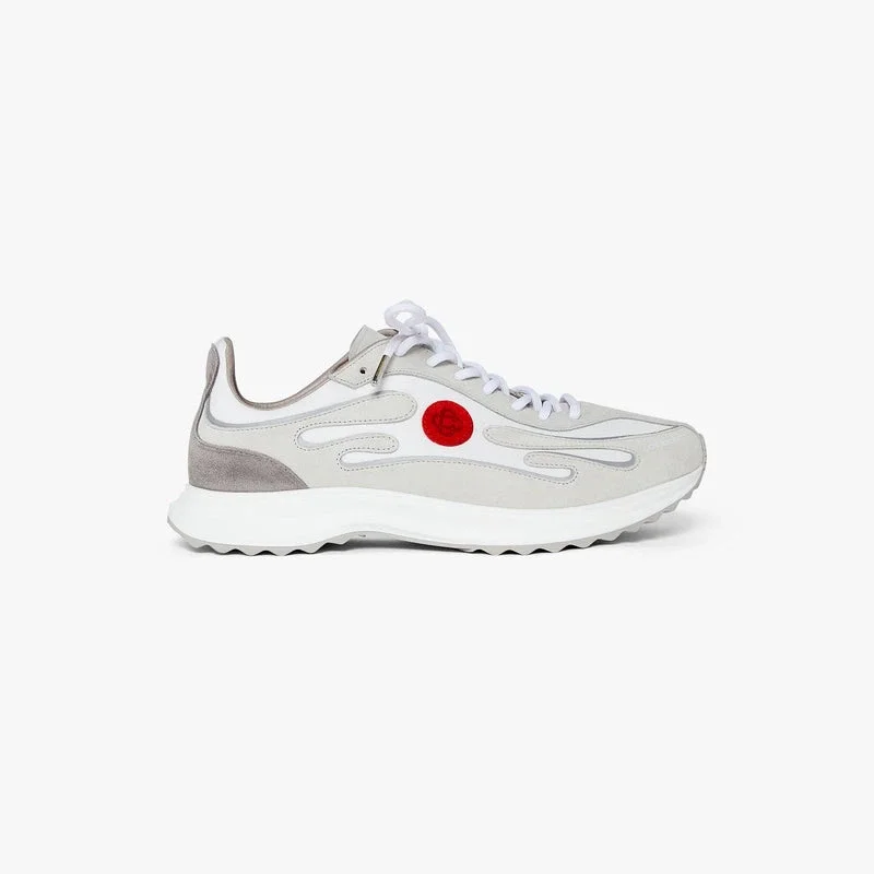 Der Herren-Sneaker „Stade Grey“ hat seinen Namen von der antiken griechischen Maßeinheit für die Distanz eines Fußrennens, aus der später das Wort „Stadion“ hervorging. Das Design ist von Performance-Laufschuhen inspiriert und verkörpert die Übertragung moderner Technologie aus alter Tradition. Die Sohle zeichnet sich durch plastische Kurven aus, die eine Anspielung auf unseren „Atlantis“-Schuh und ein Markenzeichen des Casablanca-Designs sind.