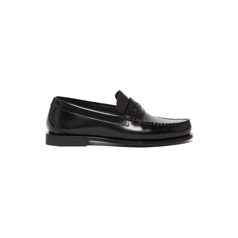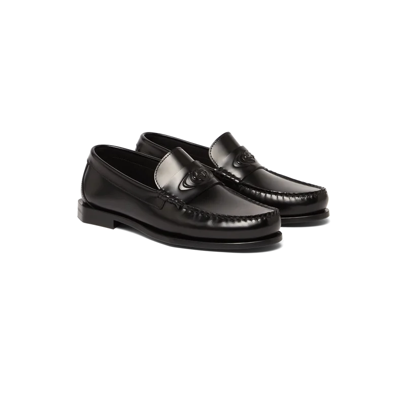 Die schwarzen Herren-Loafer aus Leder sind ein klassischer, schnürloser Slip-On-Stil mit Obermaterial aus italienischem Kalbsleder. Abgerundet durch einen markanten Lederriemen über dem Vorderblatt, Lederfutter, Ledersohle und einen 15-mm-Blockabsatz.
