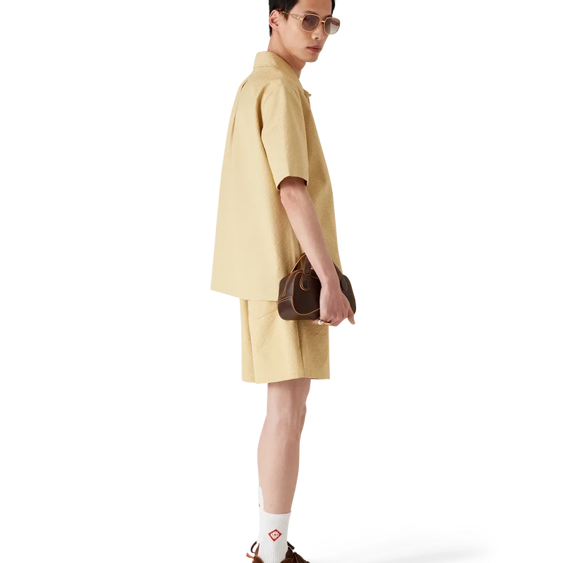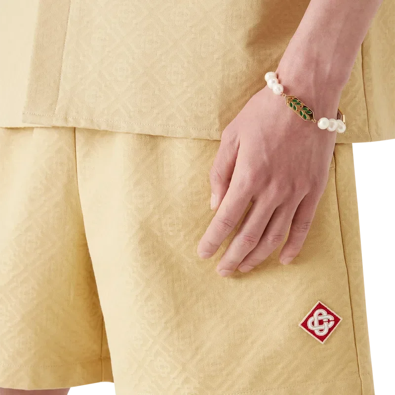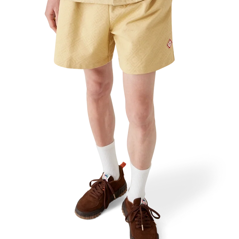 Die Jacquard-Monogram-Shorts sind ein klassisches Design aus einem Monogram-Baumwoll-Jacquard-Stoff. Mit elastischem Bund, Kordelzug mit goldfarbenen Enden, einer Gesäßtasche und Seitentaschen in den Beinen.