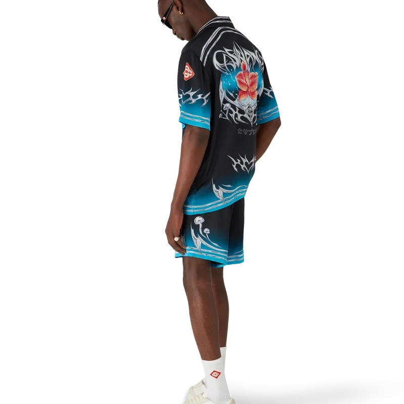 Die Blades Seidensatin-Shorts sind ein bedrucktes Design mit einem Motiv, das mit dem Kontrast zwischen zwei gegensätzlichen Empfindungen spielt – der Schärfe der Klinge und dem kalten, silbernen Chrom, kontrastiert mit der Wärme der Natur, wie den kräftigen Rosa- und Rottönen einer Orchideenblüte. Das Hinzufügen von Wasser verleiht dem Design eine frische, klare Note. Abgerundet durch einen elastischen Bund, einen Kordelzug, Eingrifftaschen und eine aufgesetzte Gesäßtasche.