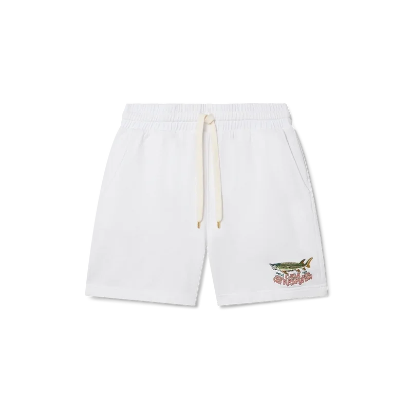 Als klassisches Modell von Casablanca Paris sind die weißen Unisex-Shorts mit unserem exklusiven, kontrastfarben gestickten Doppel-Logo versehen. Die aus 100 % Bio-Baumwolle gefertigten Shorts reichen bis über das Knie und sind mit einem Kordelzug mit goldfarbenen Enden sowie Seitentaschen ausgestattet.
