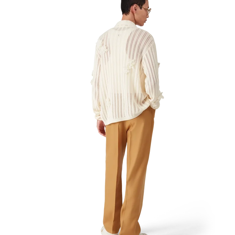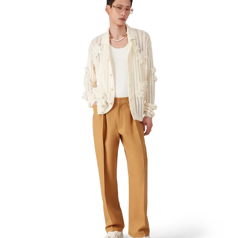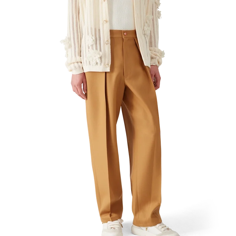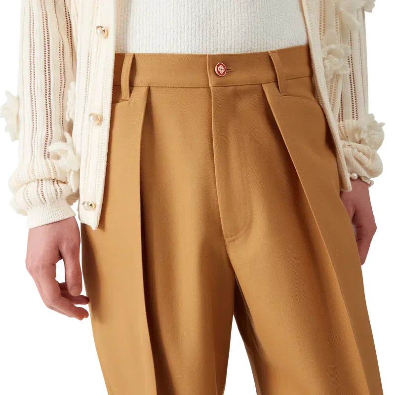 Die Plissee-Chinos sind ein Modell mit konisch zulaufendem Bein aus Wollstoff und einem Futter aus Baumwollmischung. Abgerundet durch Gürtelschlaufen, einen Reißverschluss, Vordertaschen, eine diagonale Falte und Paspeltaschen hinten mit einem Emailleknopfverschluss mit ineinander verschlungenem CC-Logo und goldenem Rand.<!–