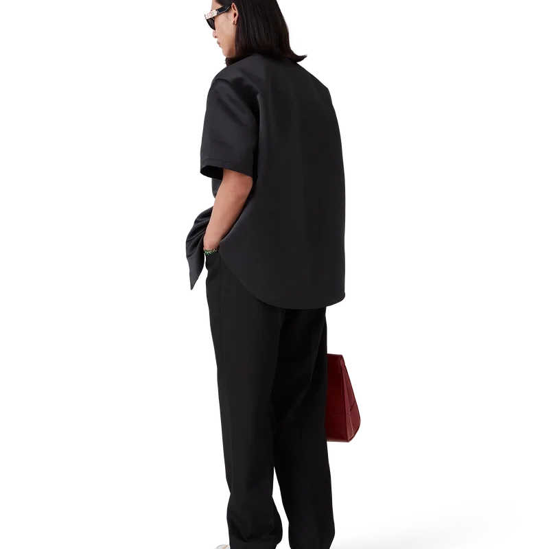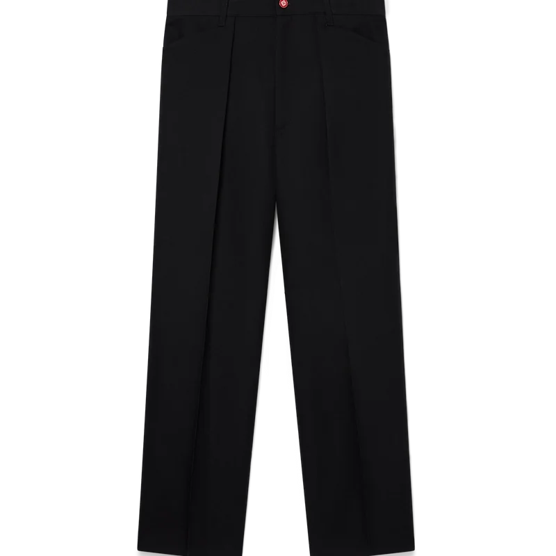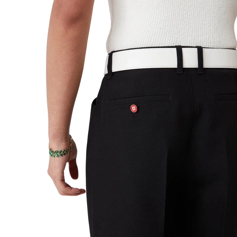 Die Plissee-Chino-Hose ist ein Modell mit geradem Bein aus Wollstoff und verfügt über ein Futter aus Baumwollmischung. Abgerundet wird sie durch schräge Vordertaschen, Gürtelschlaufen, einen Reißverschluss und aufgesetzte Gesäßtaschen.