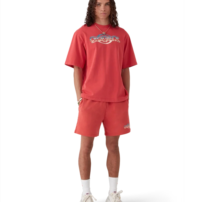 Die Chrome Sweatshorts sind ein Sportbekleidungsmodell aus Bio-Baumwollstoff mit dem Chrome Text Casablanca-Logo. Abgerundet durch einen elastischen Bund, einen Kordelzug mit goldenen Enden, Nahttaschen und eine aufgesetzte Gesäßtasche.