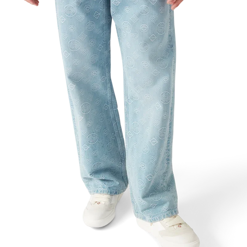 Die Denim Monogram Relaxed Fit Jeans ist ein klassisches Modell mit geradem Bein und dem wiederholten Honeydew-Logo des Hauses. Dieses Muster unterscheidet sich von unseren anderen Monogrammen, da es einzigartige Formen zu einem einheitlichen Muster kombiniert. Abgerundet durch Gürtelschlaufen, Reißverschluss, schräge Taschen, aufgesetzte Gesäßtaschen und vergoldete Beschläge.