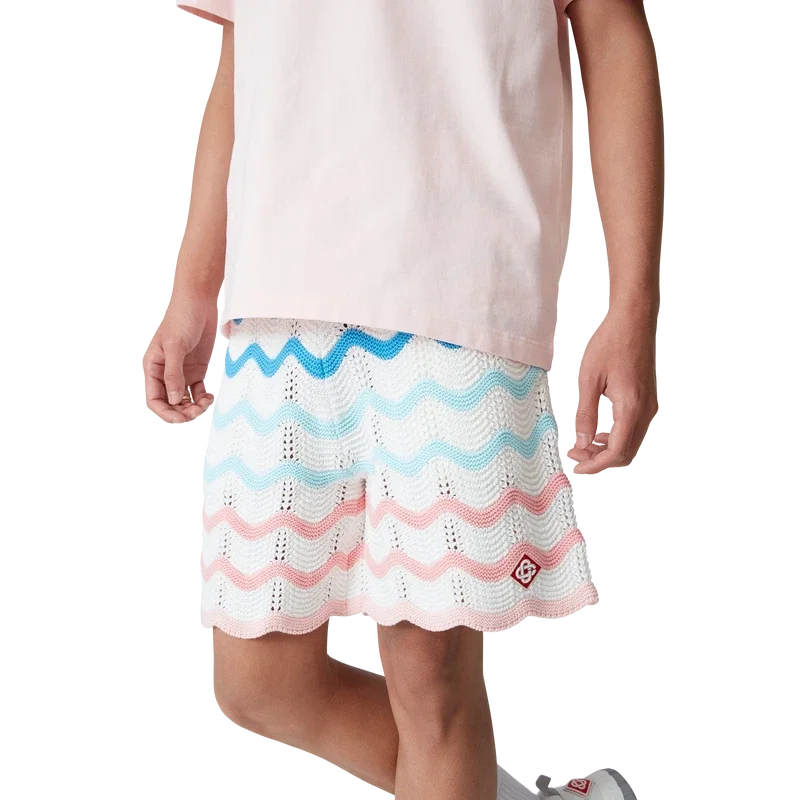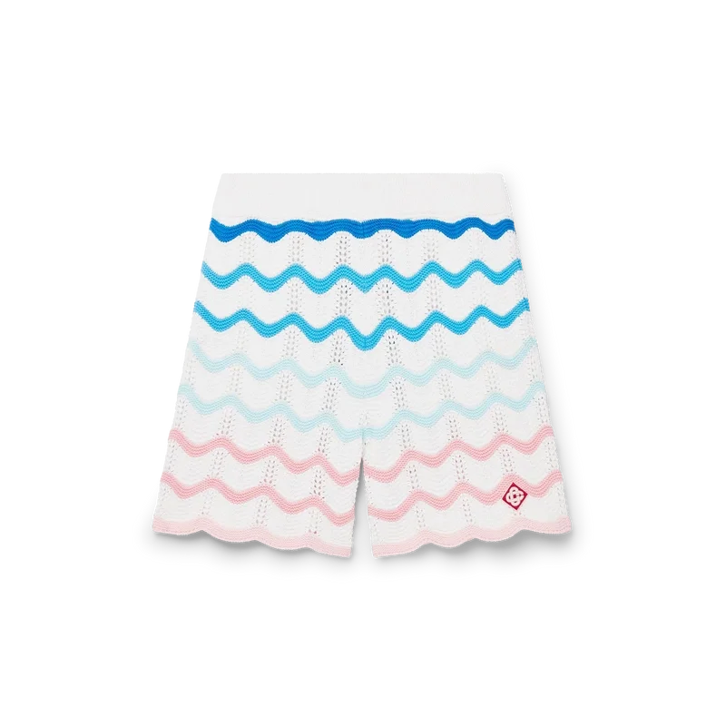 Die Gradient Wave Crochet Shorts sind ein klassisches Design aus gehäkelter Baumwolle und zeichnen sich durch das von der Memphis-Welle inspirierte Designelement aus. Abgerundet durch einen elastischen Bund, das Diamond-Logo des Hauses und Wellenmuster-Details an den Säumen.