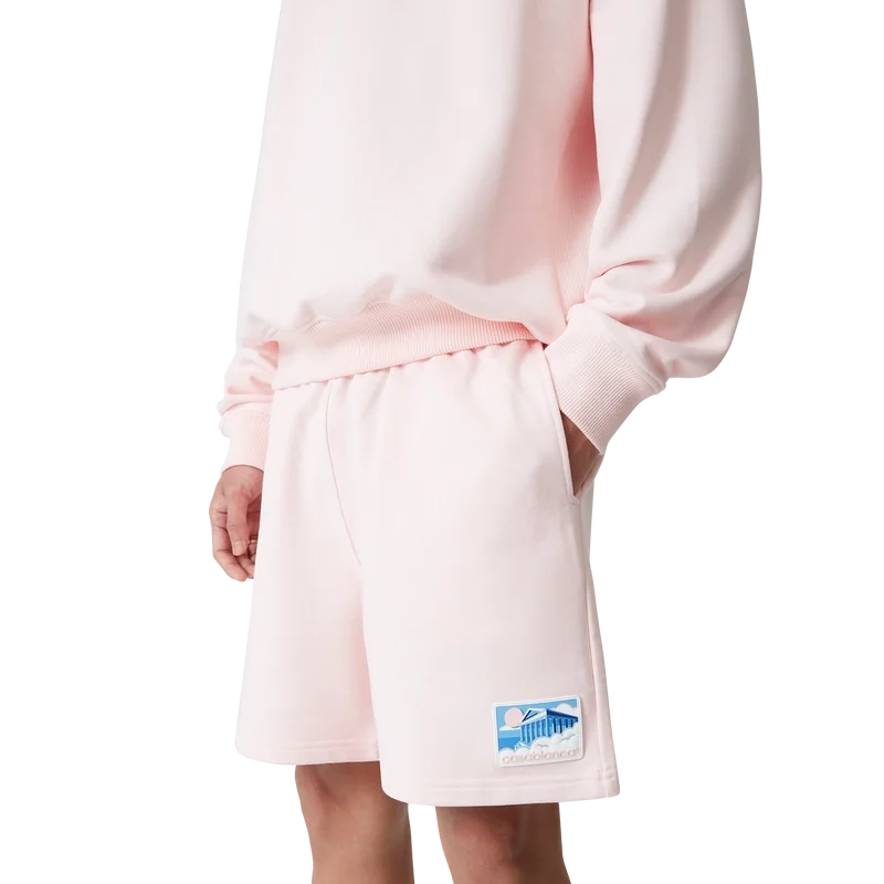 Die Greek Temple Sweatshorts sind ein klassisches Design in der charakteristischen rosa Farbe des Labels. Mit aufgenähtem Logo, elastischem Bund, goldfarbenem Kordelzug mit Stopper für sicheren Verschluss, Seitentaschen in den Nähten und einer aufgesetzten Gesäßtasche.
