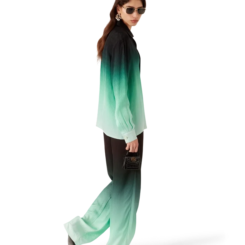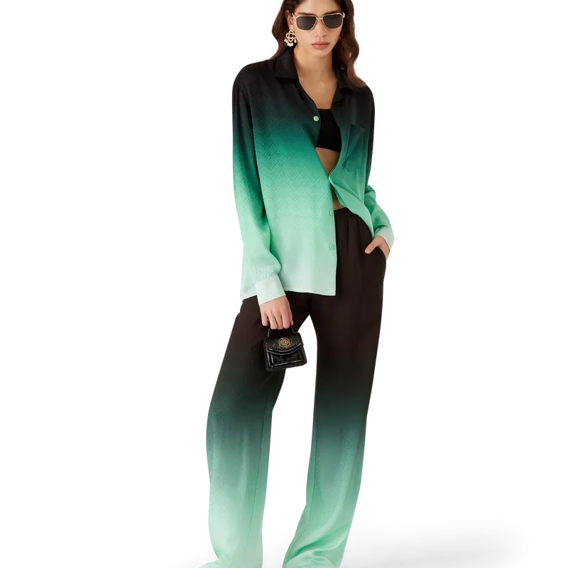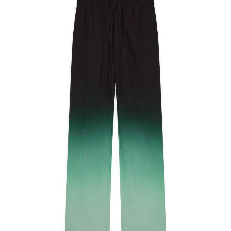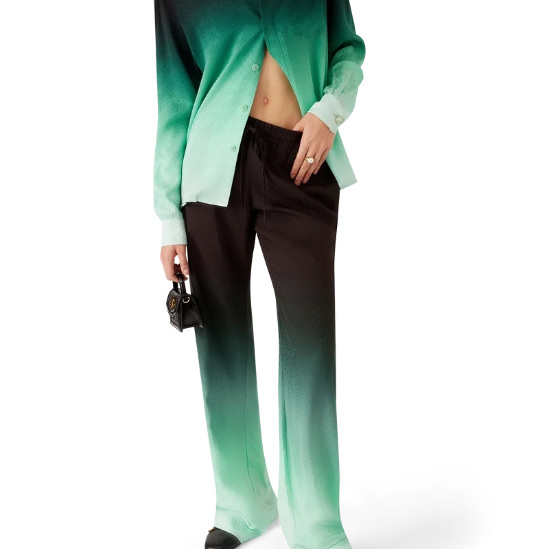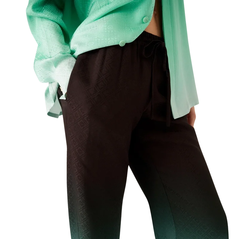 Die „Gradient Ping Pong Jacquard“-Hose präsentiert sich mit einem durchgehenden Druck – im Mittelpunkt steht ein klassisches Monogramm, das für unsere erste japanische Kollektion entworfen wurde und sich als Rapport aus diagonal fliegenden Tischtennisbällen zusammensetzt – gefertigt aus einem Seiden-Twill-Stoff mit Farbverlauf. Abgerundet wird das Design durch einen elastischen Bund, Eingrifftaschen, eine aufgesetzte Gesäßtasche und einen Kordelzug.