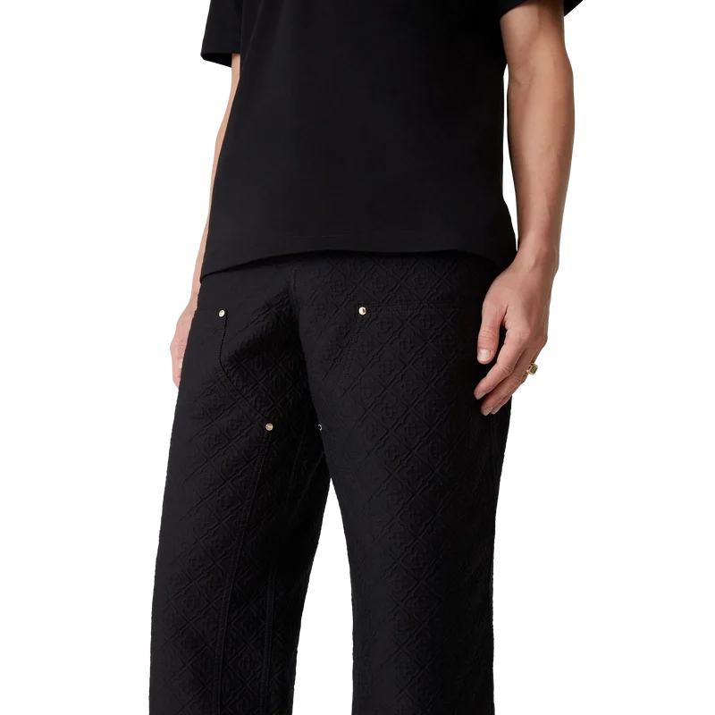 Die Jacquard-Cargo-Hose ist ein Modell mit geradem Bein aus Jacquard-Baumwollstoff und trägt das charakteristische Diamond Monogram des Hauses. Abgerundet wird sie durch Einsätze an den Oberschenkeln, vergoldete Metallbeschläge, schräge Taschen, aufgesetzte Gesäßtaschen, einen Reißverschluss und Gürtelschlaufen.
